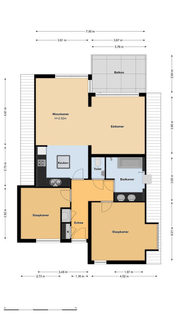 - De galerijflat heeft een woonoppervlakte van 88 m² en beschikt over 3 kamers, waarvan 2 slaapkamers;