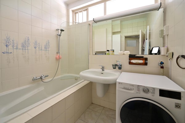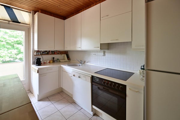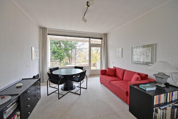 Dit lichte 2-kamer appartement bevindt zich op de derde en bovenste verdieping en biedt zonnige balkons aan zowel de voor- als achterzijde. De ruime L-vormige woonkamer van 46 m² beschikt over een open haard en geeft toegang tot de balkons. De moderne keuken is uitgerust met diverse inbouwapparatuur. De royale slaapkamer heeft een grote kastenwand en ook toegang tot het balkon. De badkamer is voorzien van een ligbad, wastafel en wasmachineaansluiting. Het goed onderhouden complex ligt dicht bij het centrum en openbaar vervoer.