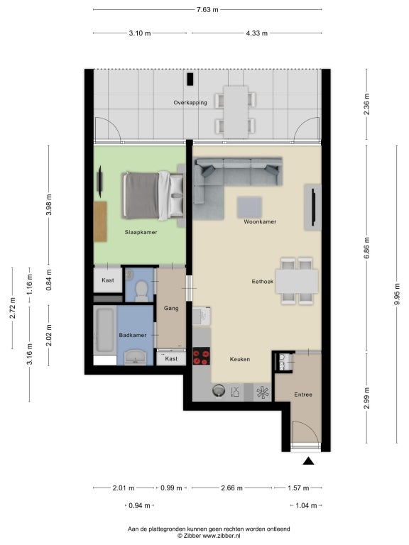 - De bovenwoning heeft een woonoppervlakte van 63 m² en beschikt over 3 kamers, waarvan 1 slaapkamer;