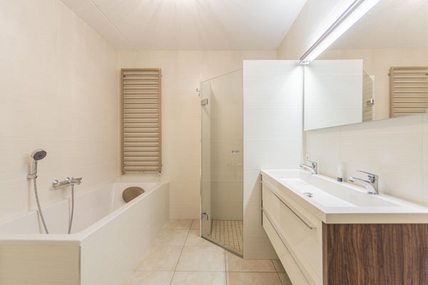 Het appartement heeft drie slaapkamers, waarvan de grootste slaapkamer met elektrische plissé gordijnen. De moderne badkamer is voorzien van een ligbad, douche en vloerverwarming.
