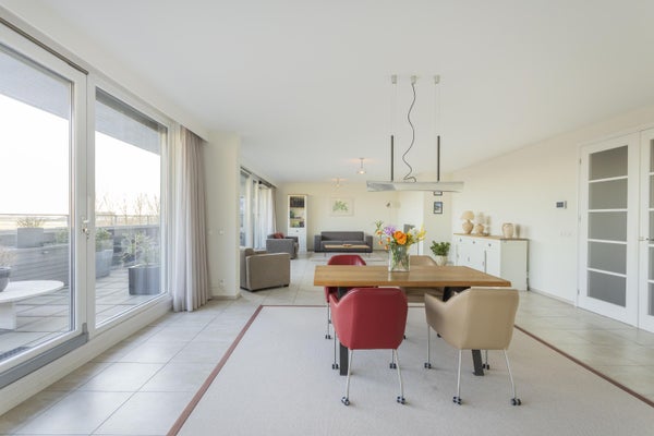Dit royale en goed onderhouden luxe 4-kamerappartement heeft circa 160 m² woonoppervlak en een prachtig vrij uitzicht. Het appartement, gelegen op de 3e en bovenste etage van het moderne appartementencomplex "Concerto" uit 2009, beschikt over een royaal dakterras van ongeveer 42 m² en twee eigen parkeerplaatsen.