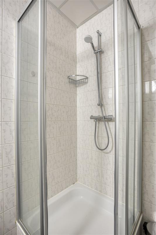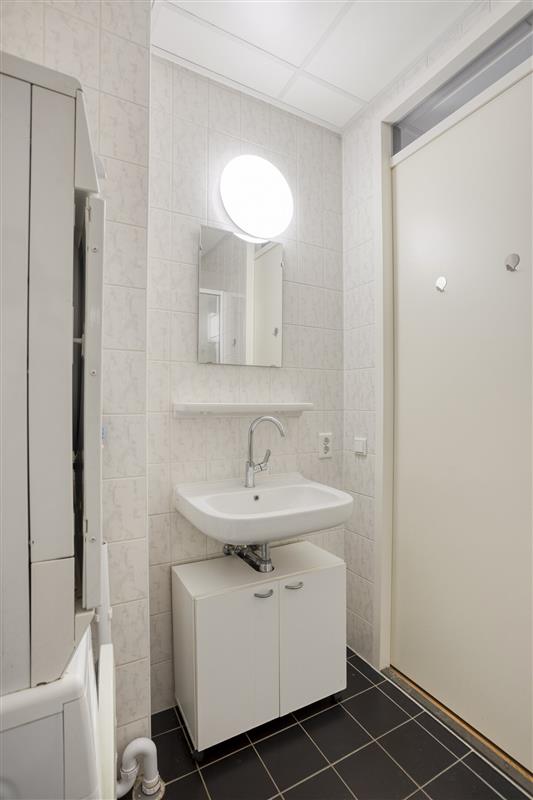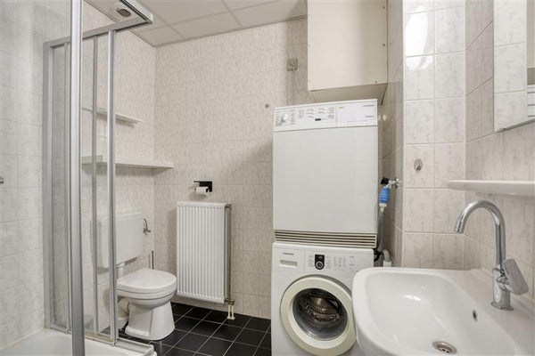 De badkamer is voorzien van een douchecabine, toilet, wastafel en een opstelplaats voor wasmachine en droger. De ruimte is functioneel en biedt met enkele ideeën en kleine aanpassingen volop mogelijkheden om er een net zo fijne plek van te maken als de rest van het appartement.