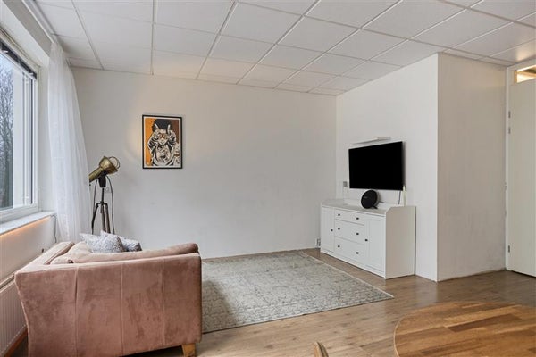 - De portiekwoning heeft een woonoppervlakte van 33 m² en beschikt over 1 kamer, waarvan 1 slaapkamer;