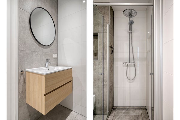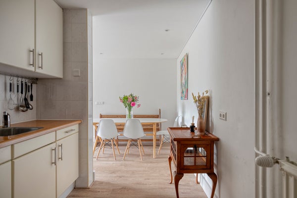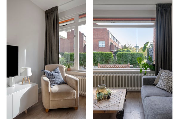 - De benedenwoning heeft een woonoppervlakte van 56 m² en beschikt over 2 kamers, waarvan 1 slaapkamer;