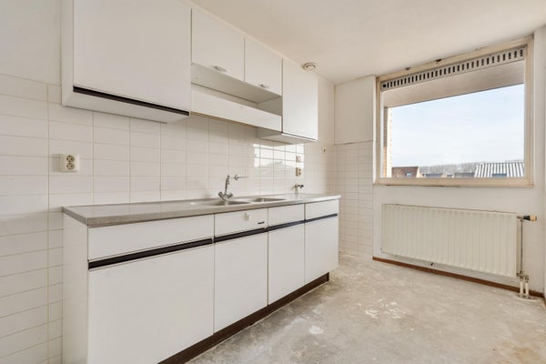 De keuken is gesitueerd aan de galerijzijde en is momenteel wat gedateerd—ideaal voor kopers die direct een nieuwe, moderne keuken willen plaatsen. Ook de badkamer is compact en gedateerd en leent zich goed voor een vernieuwingsslag. Verder is er een separaat toilet en praktische bergruimte/techniekruimte.