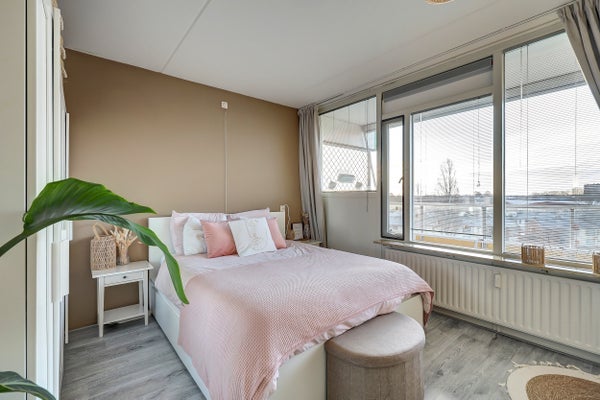 Dit ruime en moderne appartement is gelegen op de vierde verdieping van een verzorgd wooncomplex in de wijk Wolfsbos. Met een royale woonkamer die toegang biedt tot een zonnig balkon op het zuiden, geniet u van vrij uitzicht over de Valkenlaan. De halfopen keuken is uitgerust met inbouwapparatuur zoals een inductiekookplaat en een vaatwasser. Er is een ruime slaapkamer en een moderne badkamer met inloopdouche. Het appartement is volledig voorzien van dubbele beglazing en afgewerkt met een laminaatvloer. Binnen het complex zijn voorzieningen zoals een receptie, fitnessruimte en gezamenlijke fietsenstalling aanwezig. De locatie is ideaal, met nabijheid van de A28, winkelcentra en het centrum van Hoogeveen op fietsafstand. Het appartement heeft een woonoppervlakte van 62 m² en een berging van 5 m².