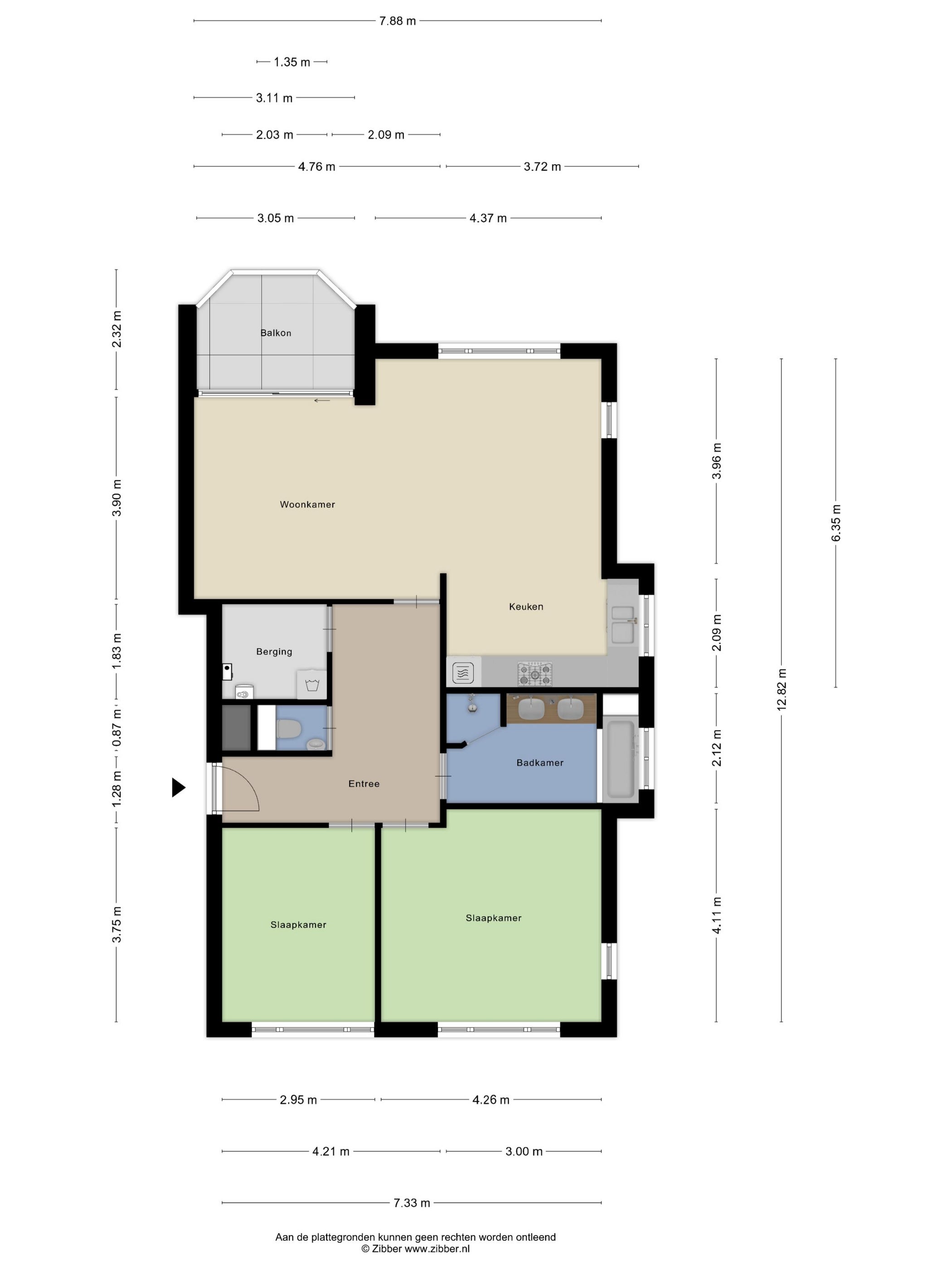 - De galerijflat heeft een woonoppervlakte van 96 m² en beschikt over 3 kamers, waarvan 2 slaapkamers;
