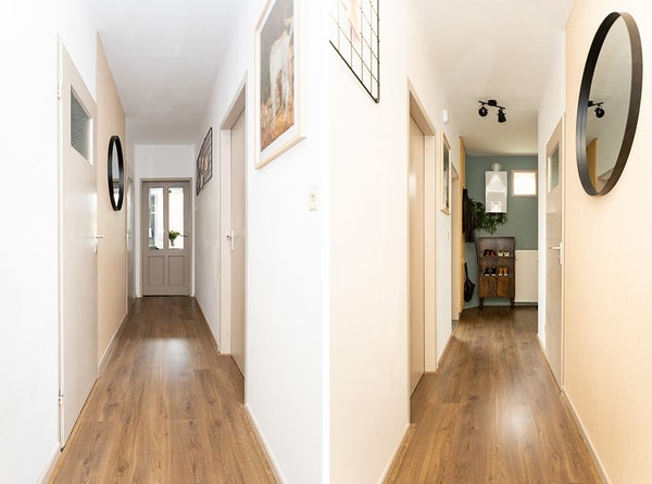 • De benedenwoning heeft een woonoppervlakte van 56 m² en beschikt over 2 kamers, waarvan 1 slaapkamer;