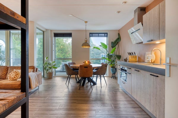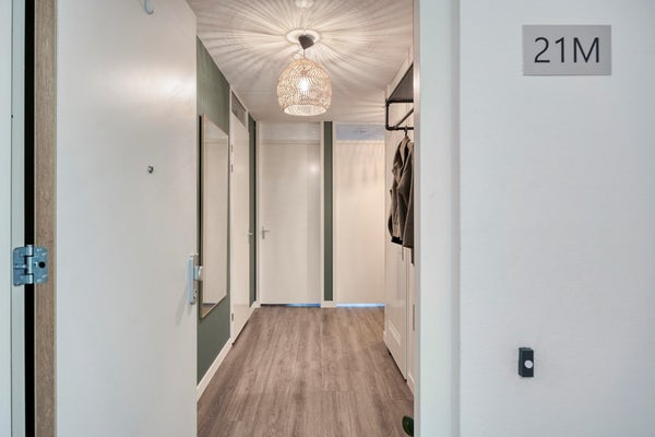 - De portiekflat heeft een woonoppervlakte van 77 m² en beschikt over 3 kamers, waarvan 2 slaapkamers;