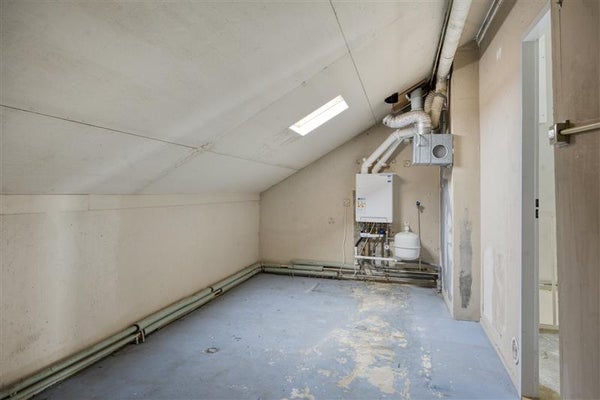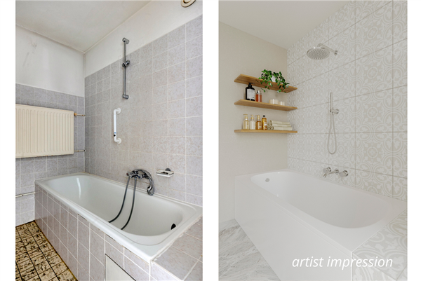 Op de bovenverdieping, waar je via de trap in de hal naartoe gaat, bevinden zich twee fijne slaapkamers. Ideaal voor jou en jouw partner, een logeerkamer of een praktische inloopkast – de keuze is aan jou. De badkamer (die gemoderniseerd moet worden) biedt ook mogelijkheden om een moderne ruimte met regendouche, stijlvolle tegels en veel comfort te realiseren. Achter de badkamer biedt de overloop toegang tot een royale bergruimte. Hier vind je niet alleen opslagmogelijkheden, maar ook de cv-ketel en mechanische ventilatie, praktisch en goed bereikbaar.