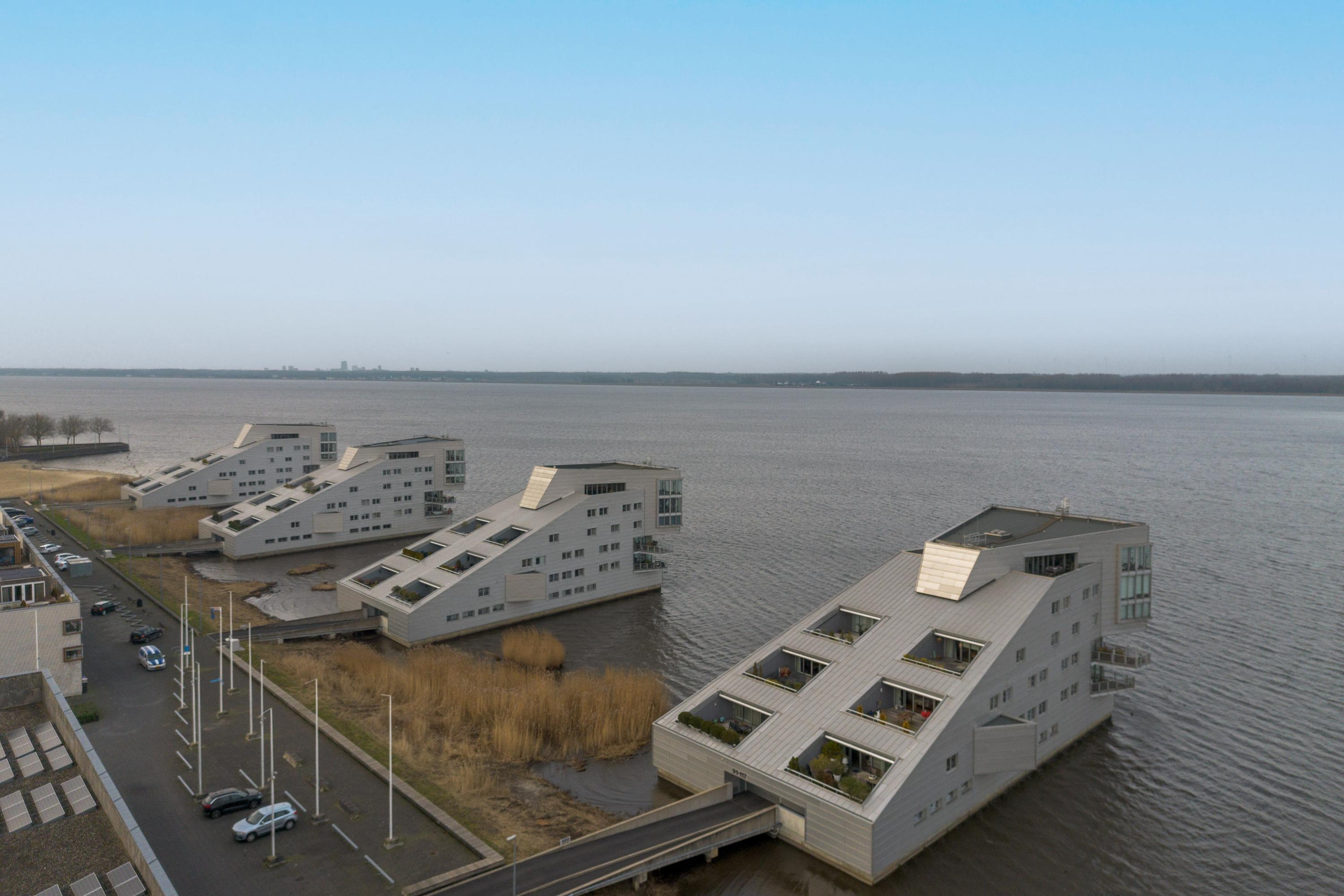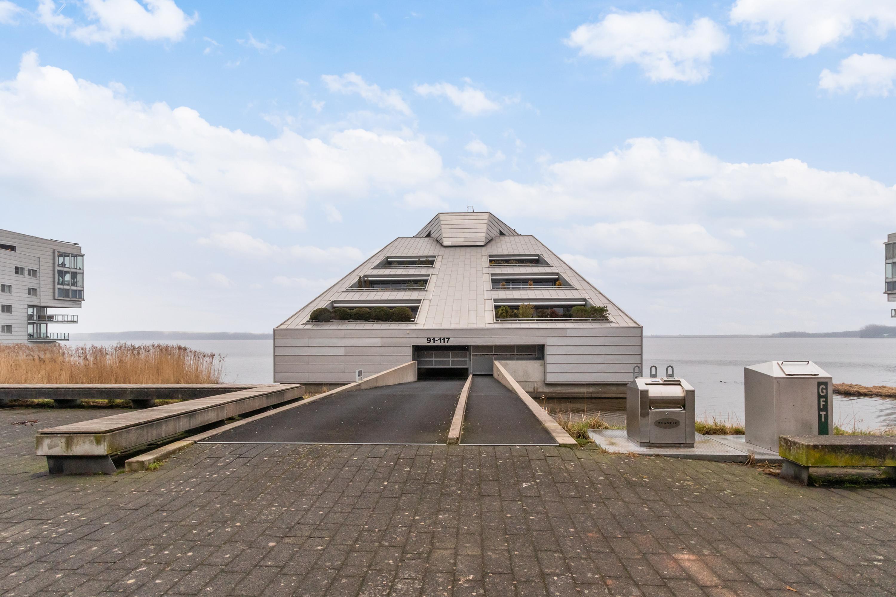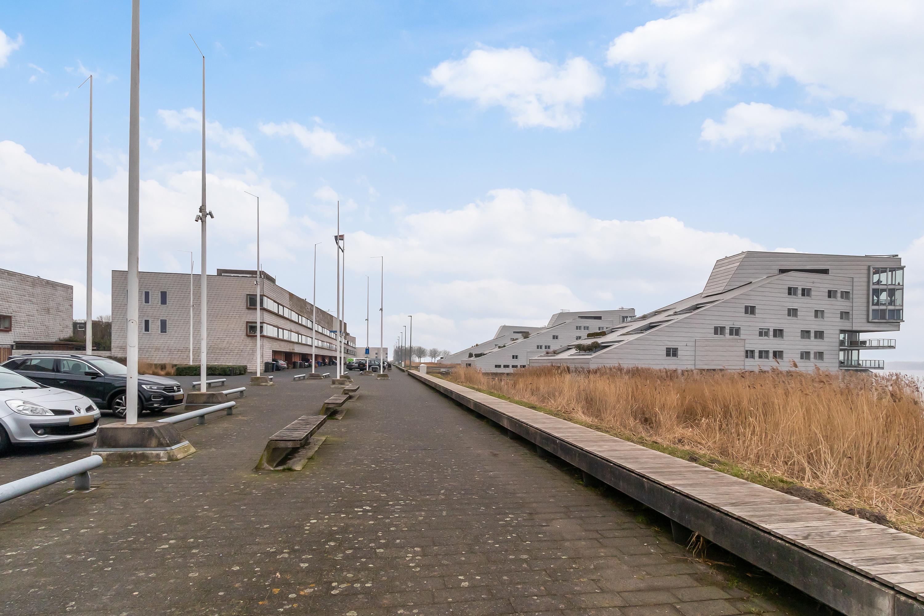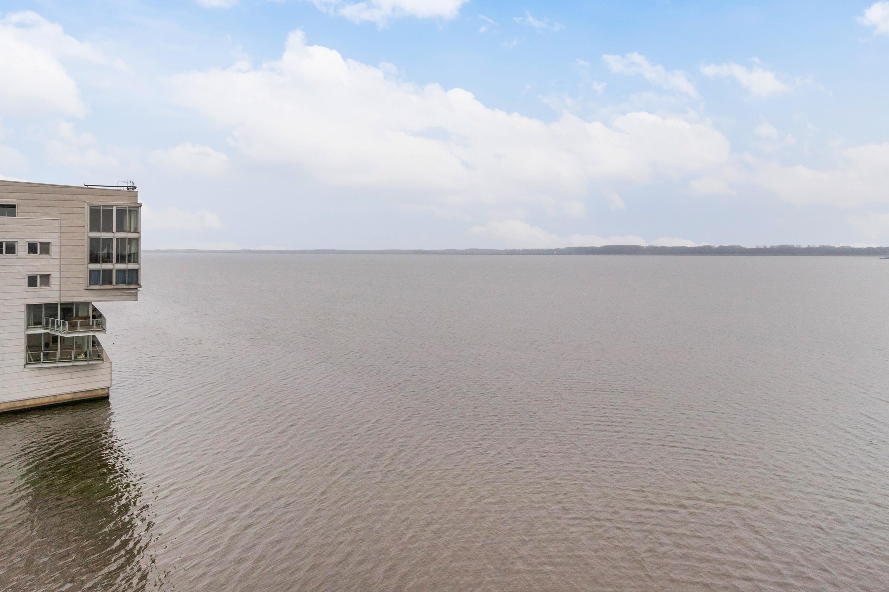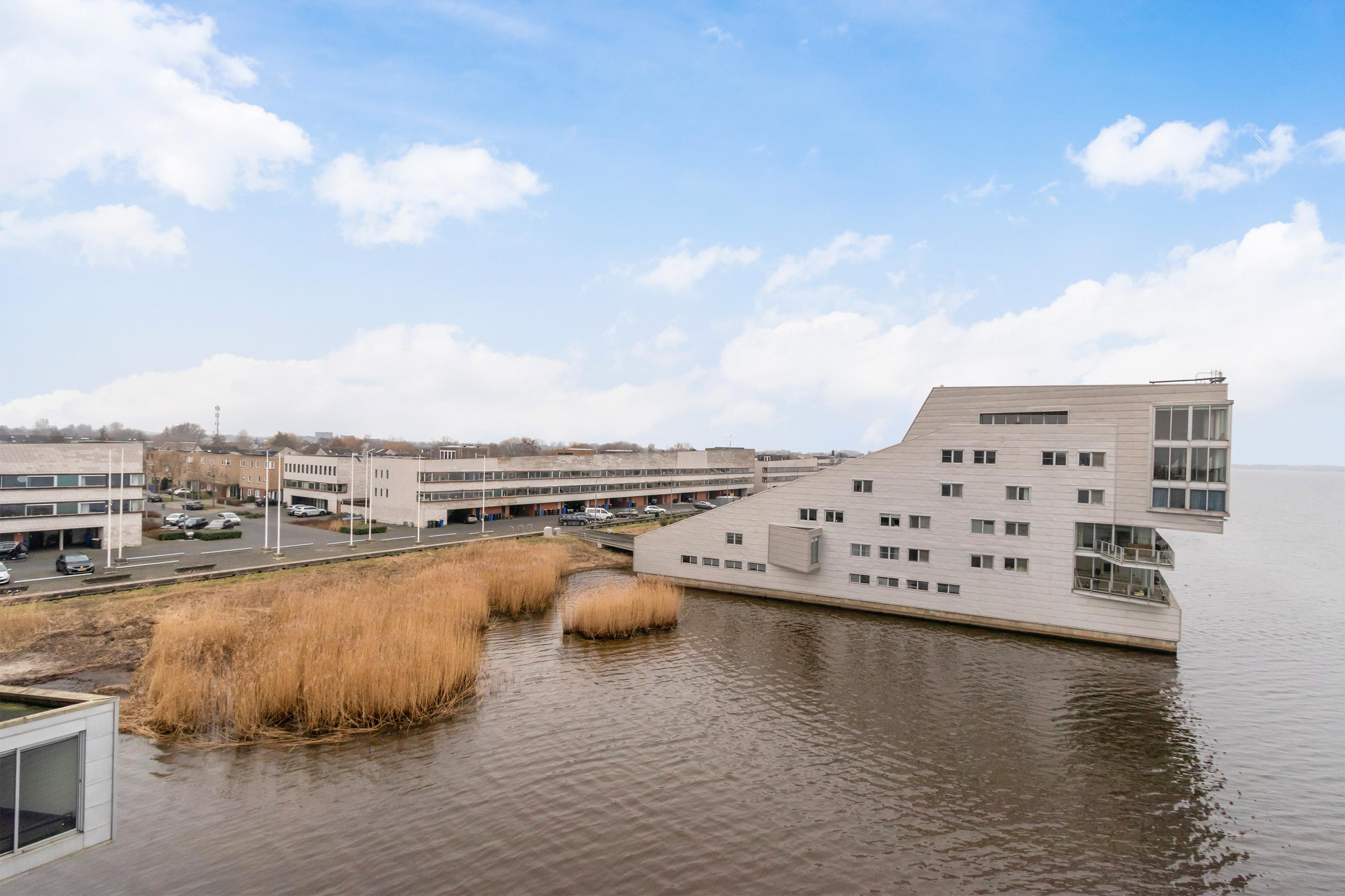 Dit unieke en royale appartement is een maisonnette over twee woonlagen, prachtig ontworpen door het architectenbureau Neutelings Riedijk. Gelegen op de derde en vierde verdieping, biedt het een panoramisch uitzicht op het Gooimeer. De indeling omvat op de derde verdieping een ruime hal met stookruimte, een apart toilet, een berging voor wasmachine en droger, en drie slaapkamers, waaronder een hoofdslaapkamer. De moderne badkamer is voorzien van een inloopdouche en dubbele wastafel. De vierde verdieping herbergt een lichte woon- en eetkamer met een open keuken uitgerust met hoogwaardige AEG-apparatuur en een kookeiland. Tevens is er een eigen parkeerplaats en een royale berging beschikbaar. Het appartement met een woonoppervlak van 140 m² ligt in een actieve VvE.