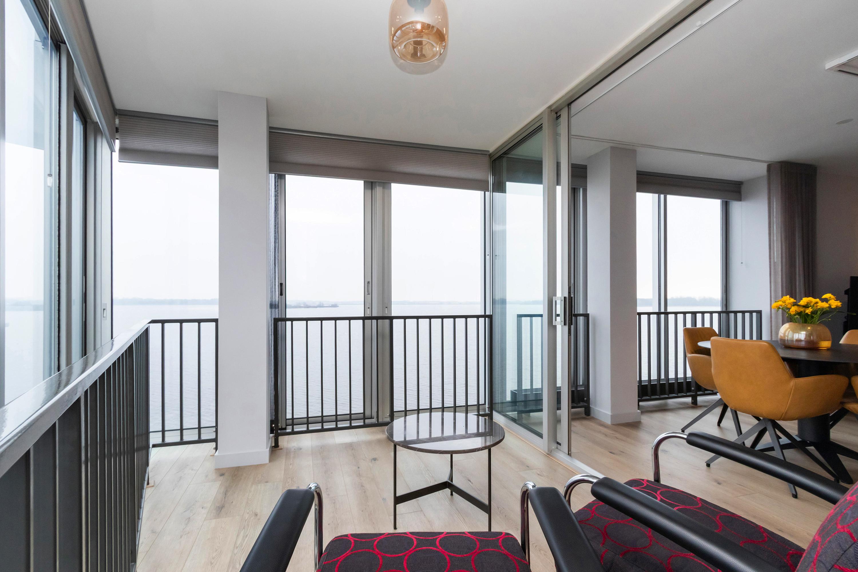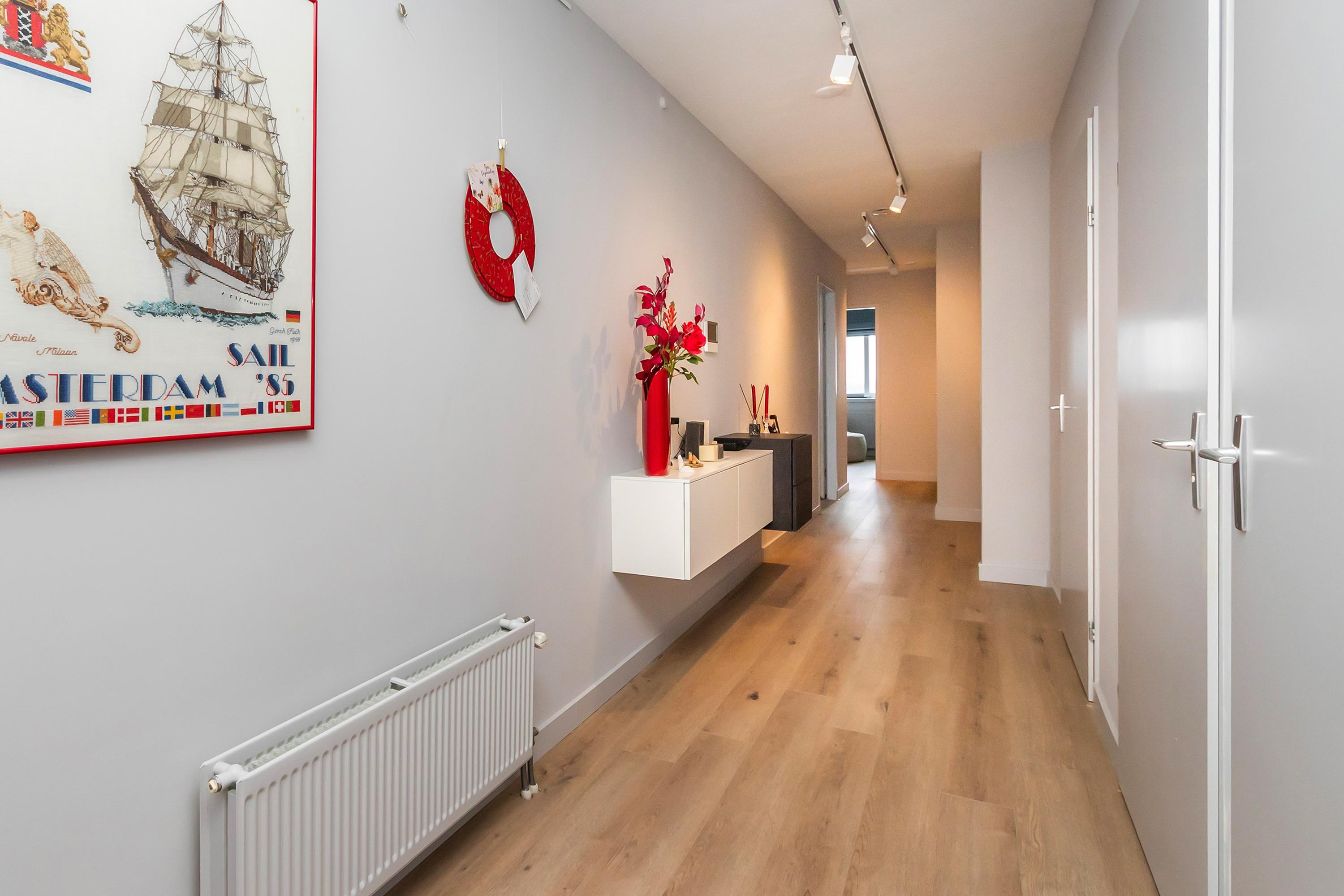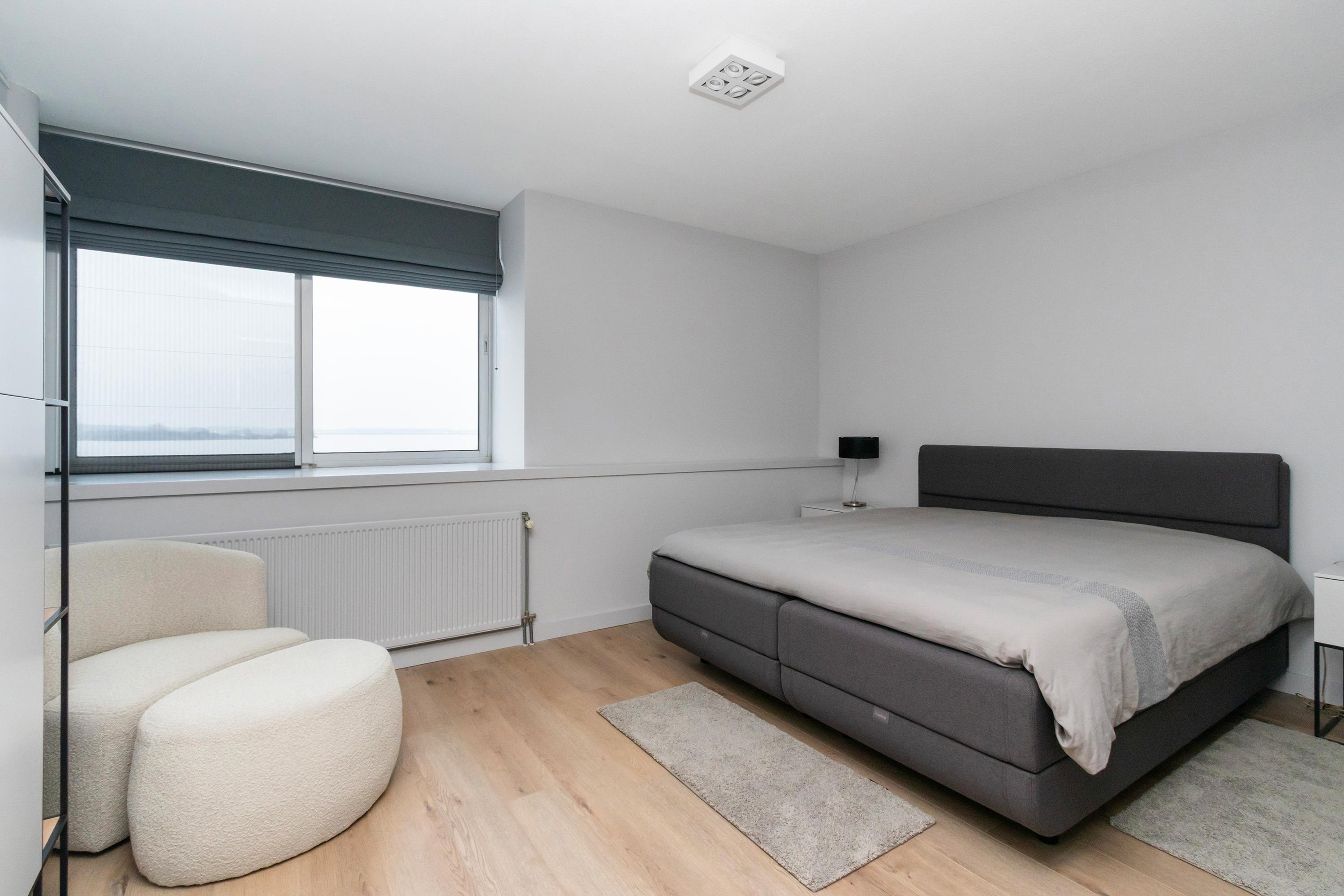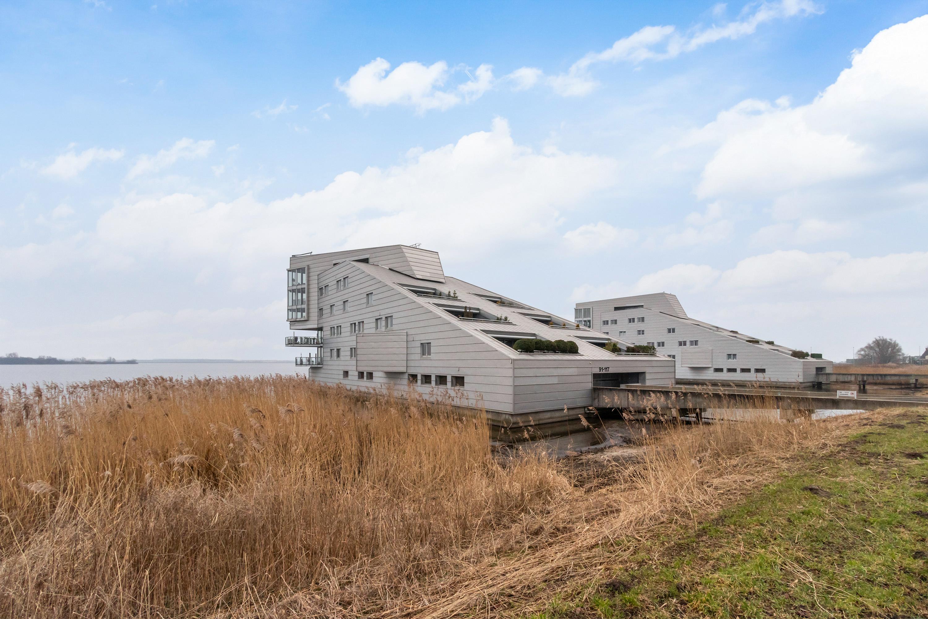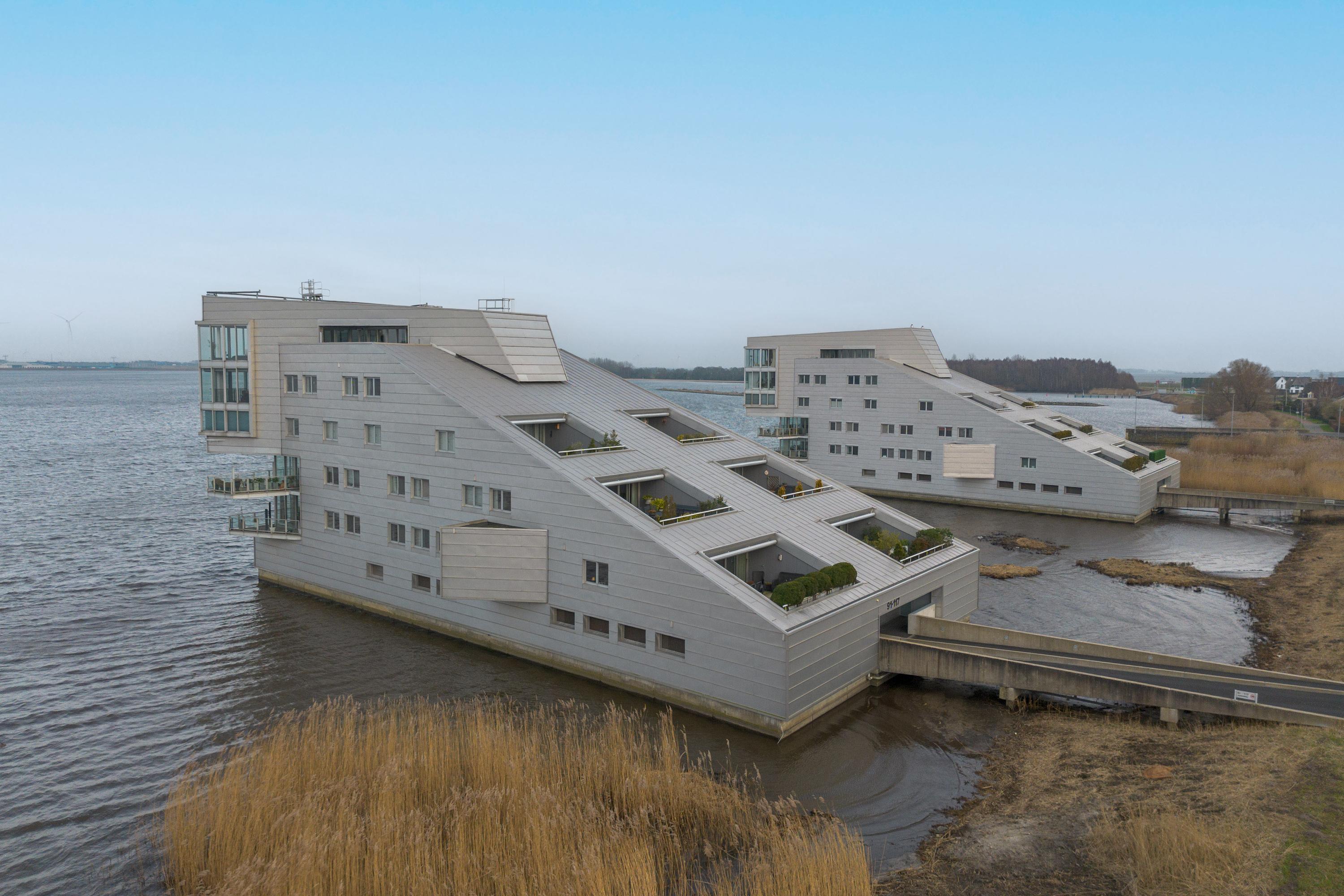 Dit unieke en royale appartement is een maisonnette over twee woonlagen, prachtig ontworpen door het architectenbureau Neutelings Riedijk. Gelegen op de derde en vierde verdieping, biedt het een panoramisch uitzicht op het Gooimeer. De indeling omvat op de derde verdieping een ruime hal met stookruimte, een apart toilet, een berging voor wasmachine en droger, en drie slaapkamers, waaronder een hoofdslaapkamer. De moderne badkamer is voorzien van een inloopdouche en dubbele wastafel. De vierde verdieping herbergt een lichte woon- en eetkamer met een open keuken uitgerust met hoogwaardige AEG-apparatuur en een kookeiland. Tevens is er een eigen parkeerplaats en een royale berging beschikbaar. Het appartement met een woonoppervlak van 140 m² ligt in een actieve VvE.