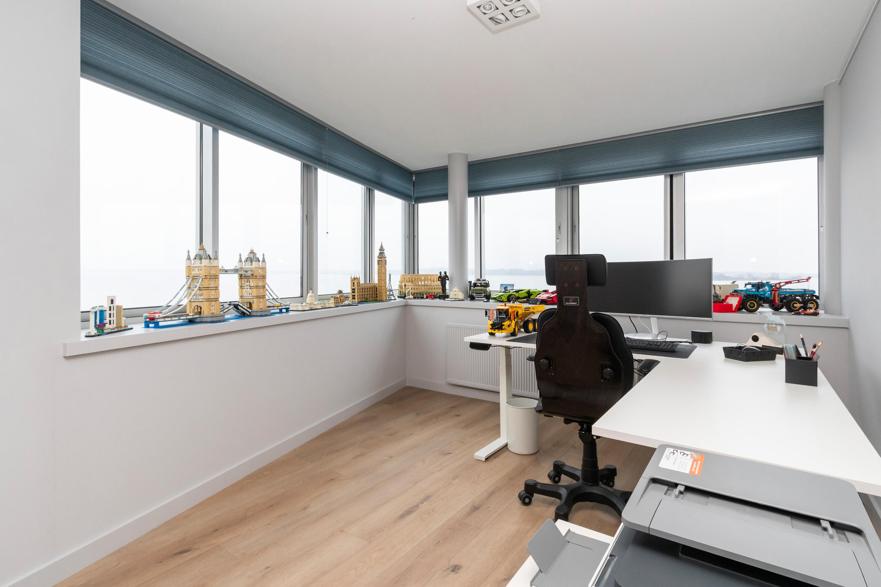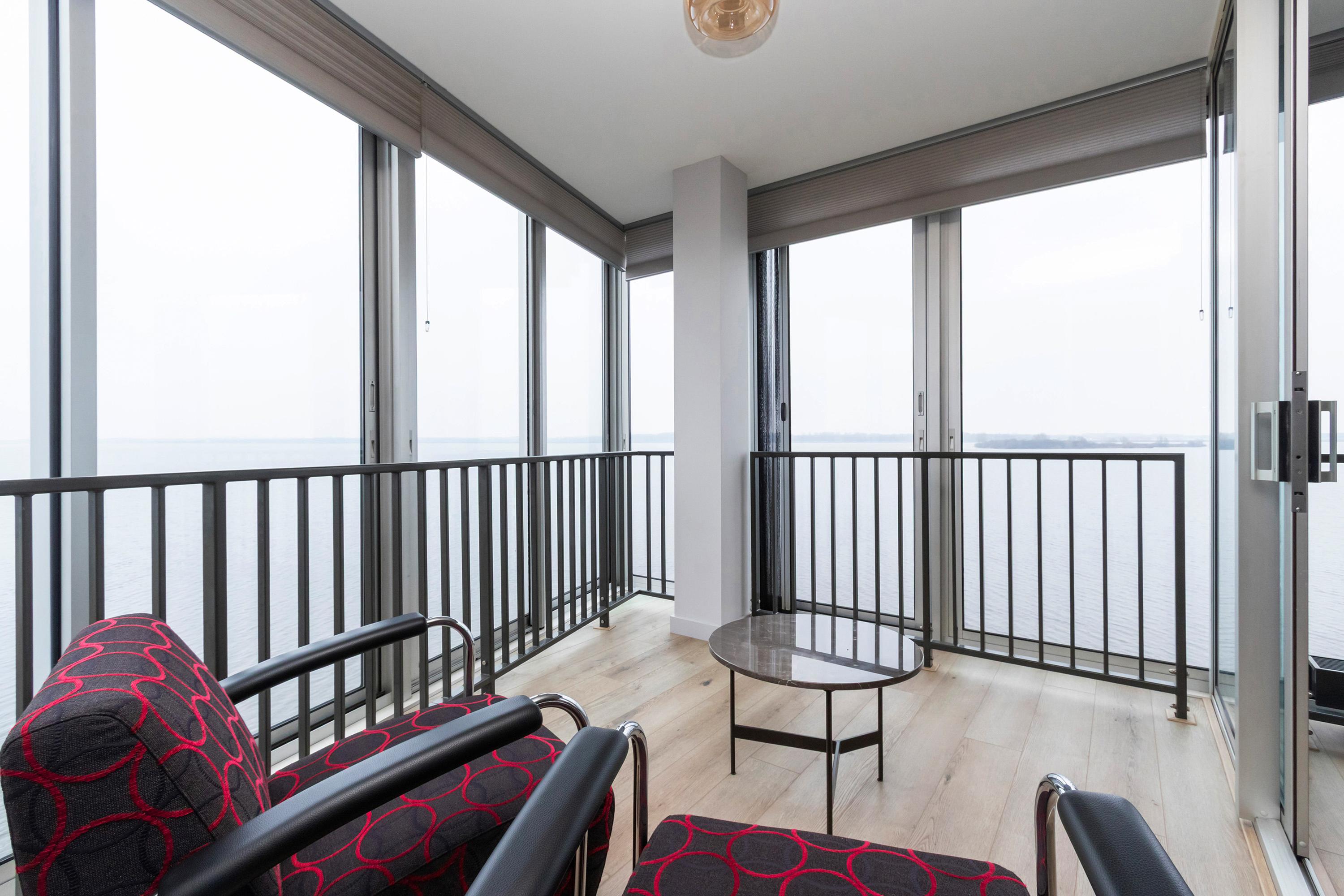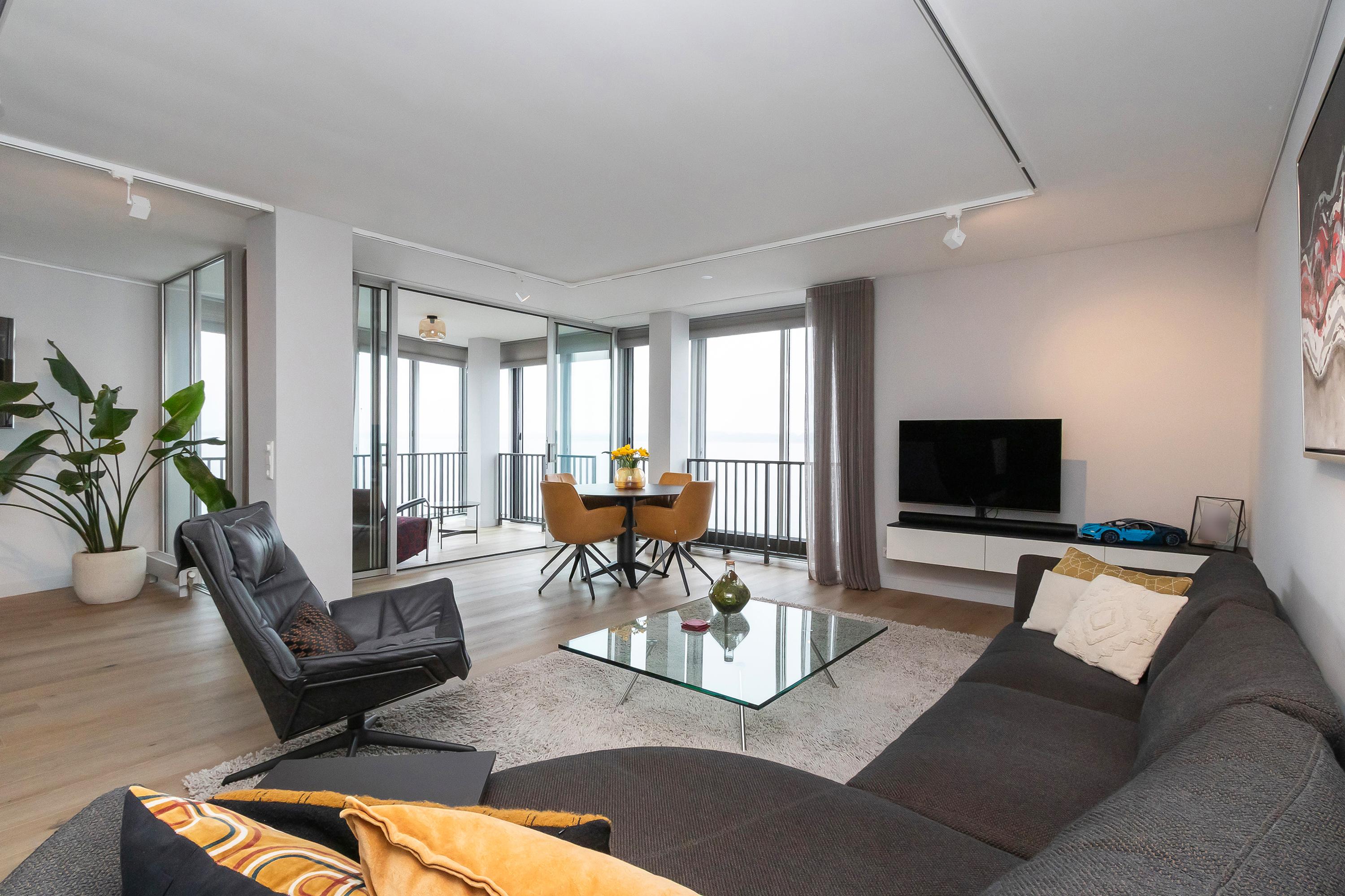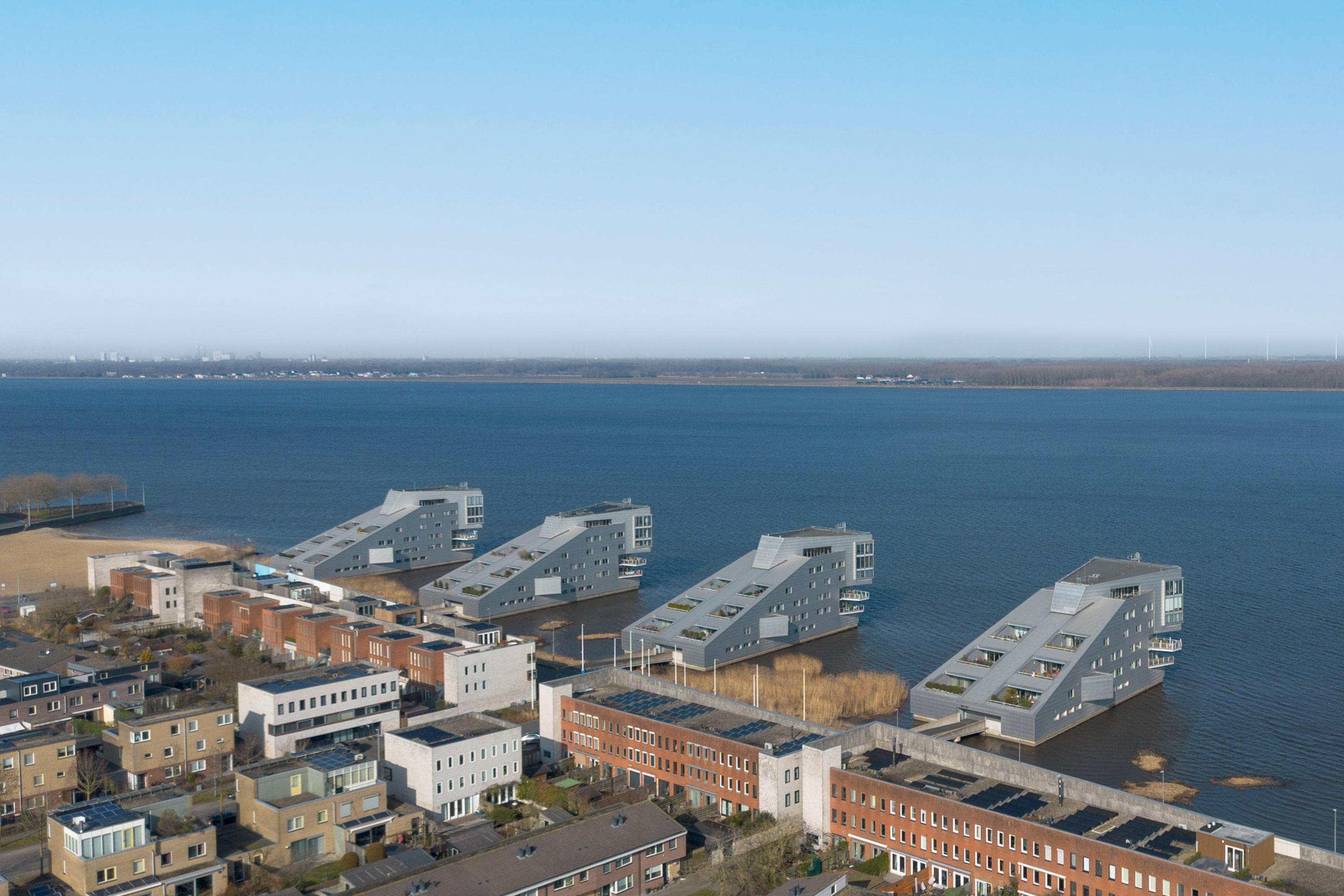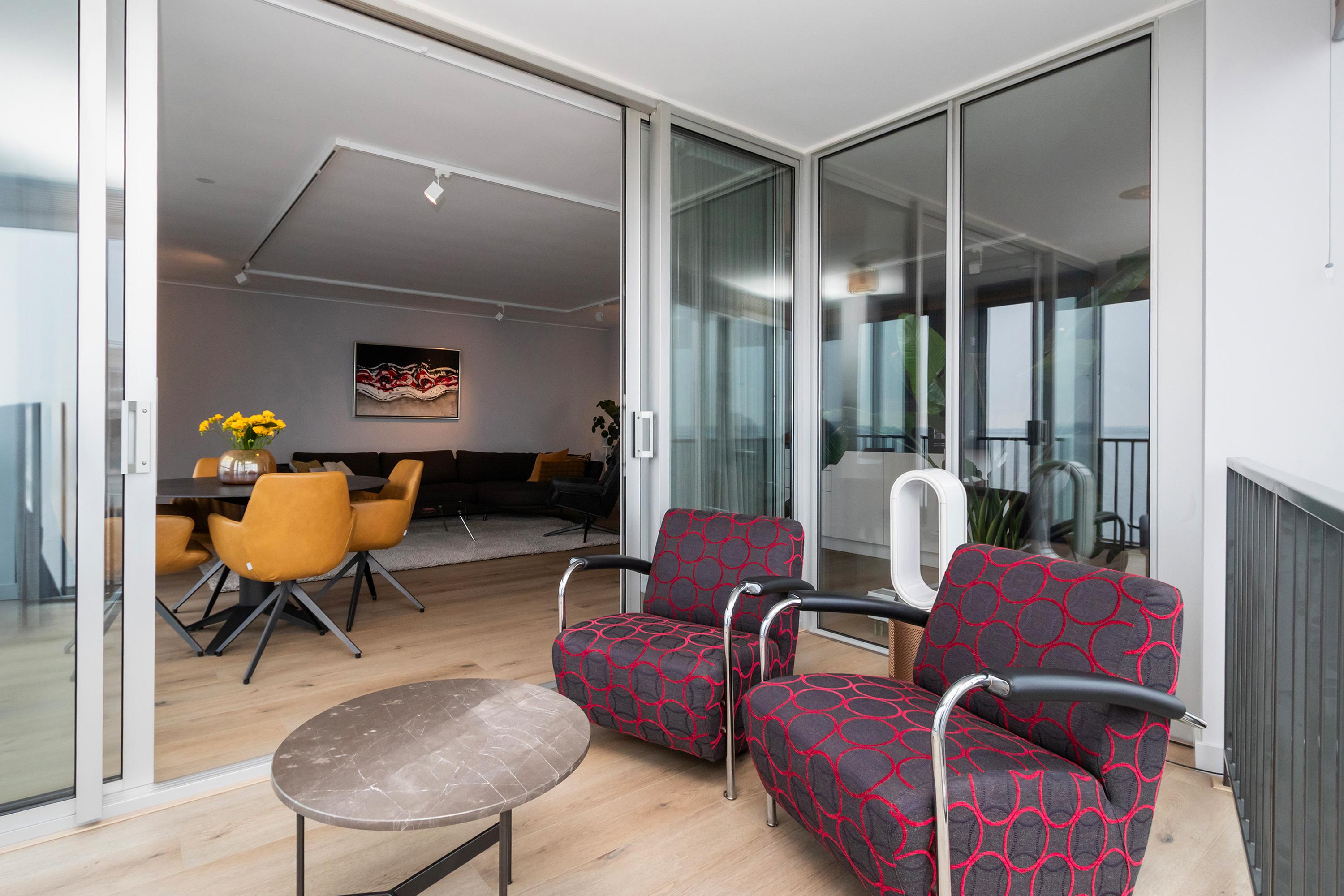 Dit unieke en royale appartement is een maisonnette over twee woonlagen, prachtig ontworpen door het architectenbureau Neutelings Riedijk. Gelegen op de derde en vierde verdieping, biedt het een panoramisch uitzicht op het Gooimeer. De indeling omvat op de derde verdieping een ruime hal met stookruimte, een apart toilet, een berging voor wasmachine en droger, en drie slaapkamers, waaronder een hoofdslaapkamer. De moderne badkamer is voorzien van een inloopdouche en dubbele wastafel. De vierde verdieping herbergt een lichte woon- en eetkamer met een open keuken uitgerust met hoogwaardige AEG-apparatuur en een kookeiland. Tevens is er een eigen parkeerplaats en een royale berging beschikbaar. Het appartement met een woonoppervlak van 140 m² ligt in een actieve VvE.