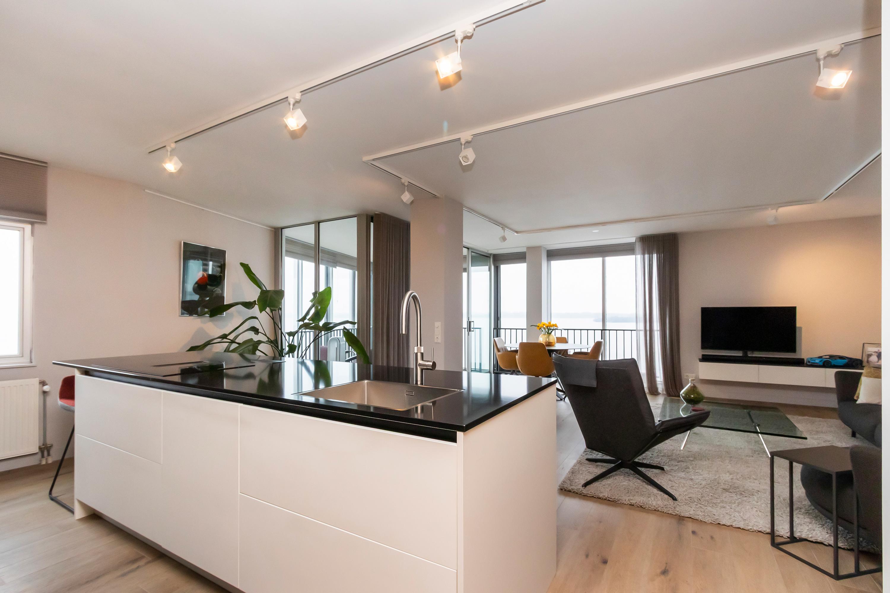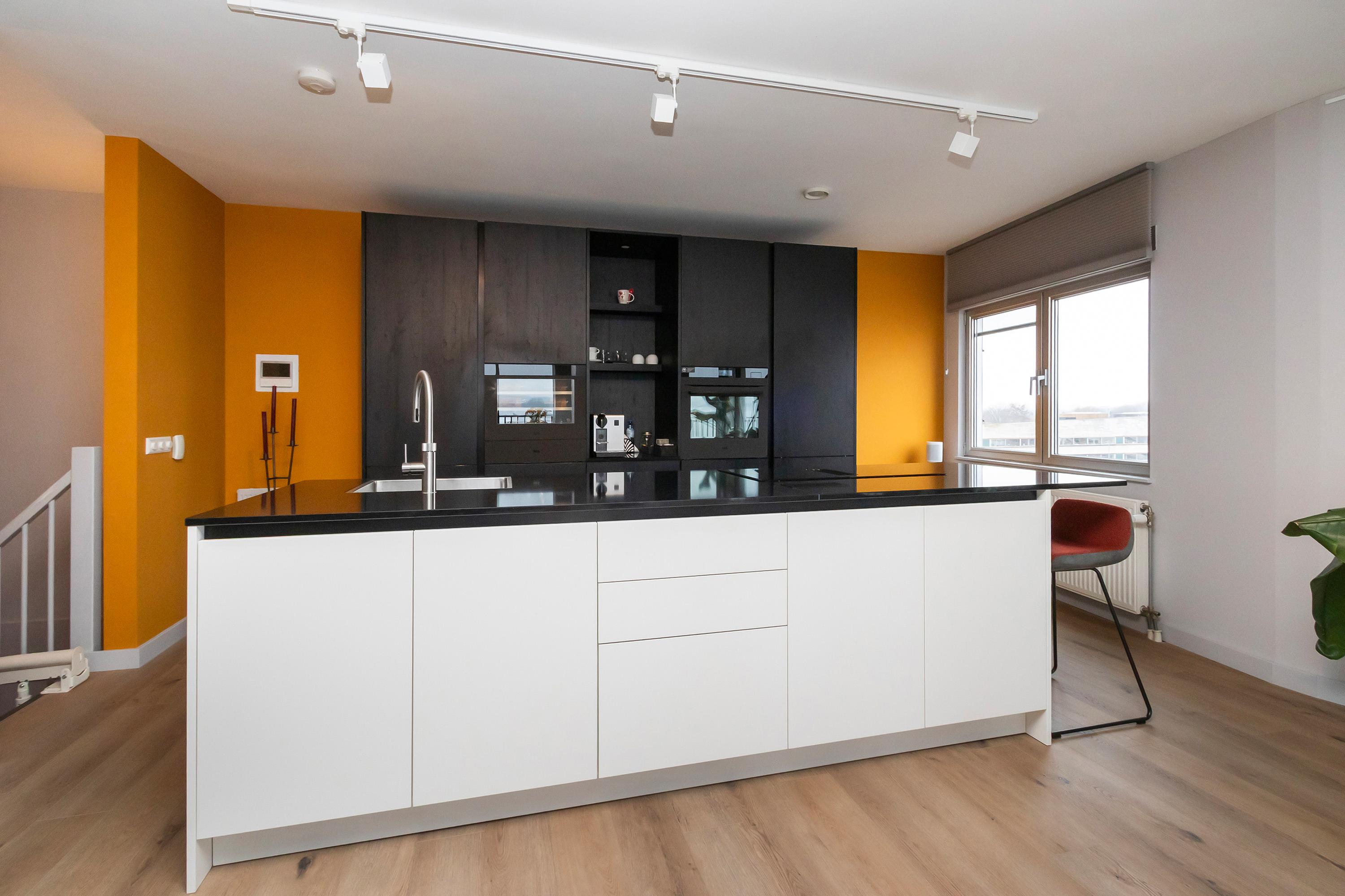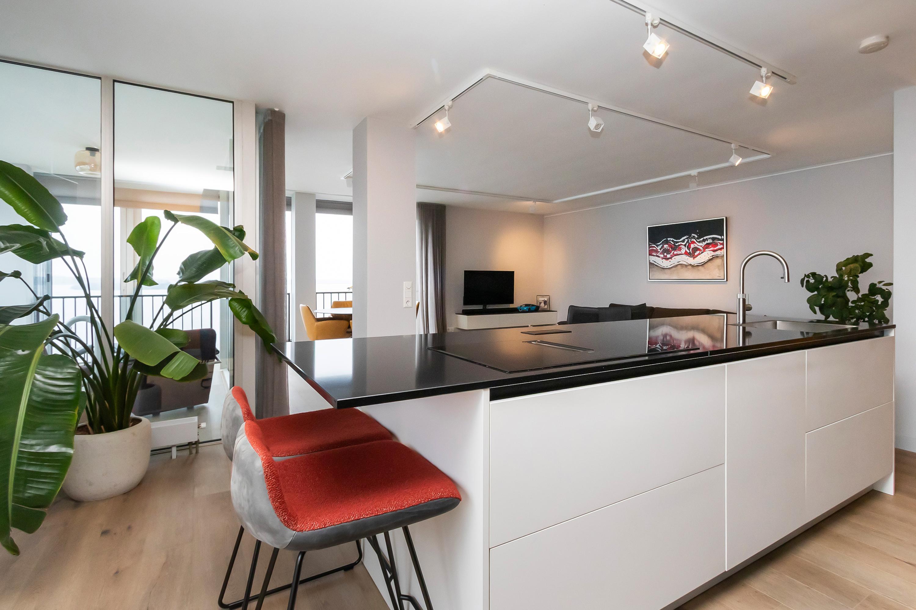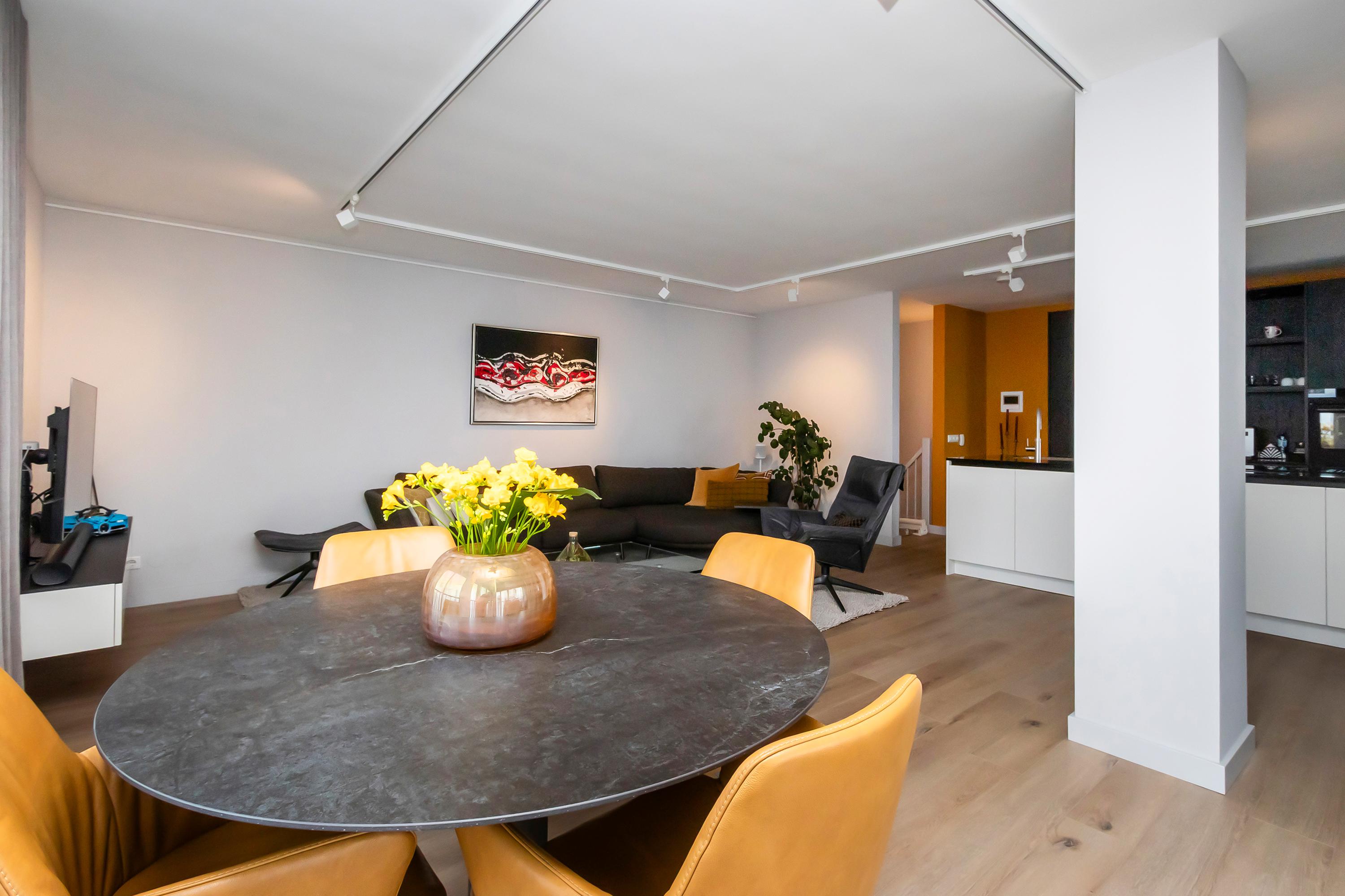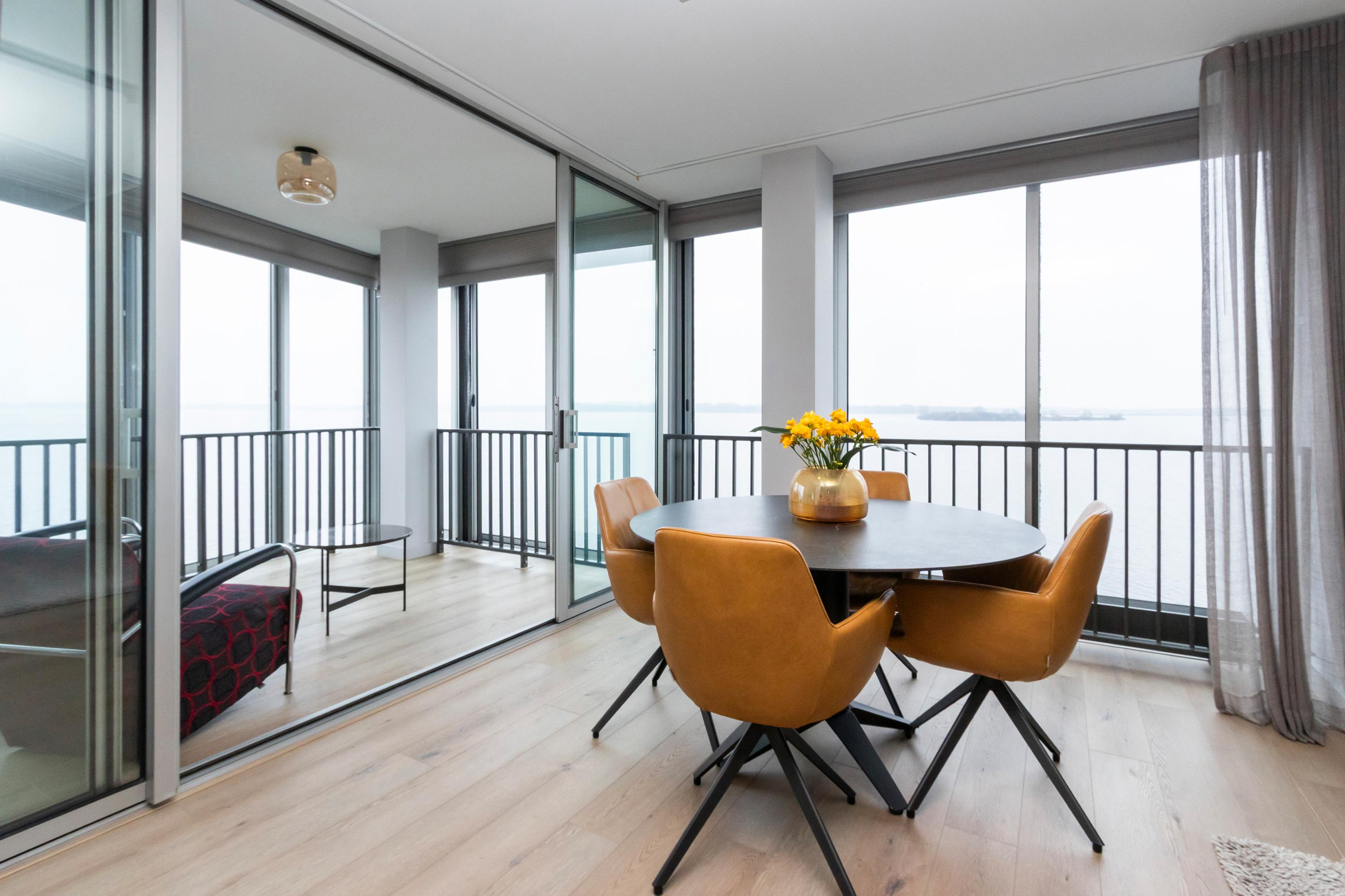 Dit unieke en royale appartement is een maisonnette over twee woonlagen, prachtig ontworpen door het architectenbureau Neutelings Riedijk. Gelegen op de derde en vierde verdieping, biedt het een panoramisch uitzicht op het Gooimeer. De indeling omvat op de derde verdieping een ruime hal met stookruimte, een apart toilet, een berging voor wasmachine en droger, en drie slaapkamers, waaronder een hoofdslaapkamer. De moderne badkamer is voorzien van een inloopdouche en dubbele wastafel. De vierde verdieping herbergt een lichte woon- en eetkamer met een open keuken uitgerust met hoogwaardige AEG-apparatuur en een kookeiland. Tevens is er een eigen parkeerplaats en een royale berging beschikbaar. Het appartement met een woonoppervlak van 140 m² ligt in een actieve VvE.