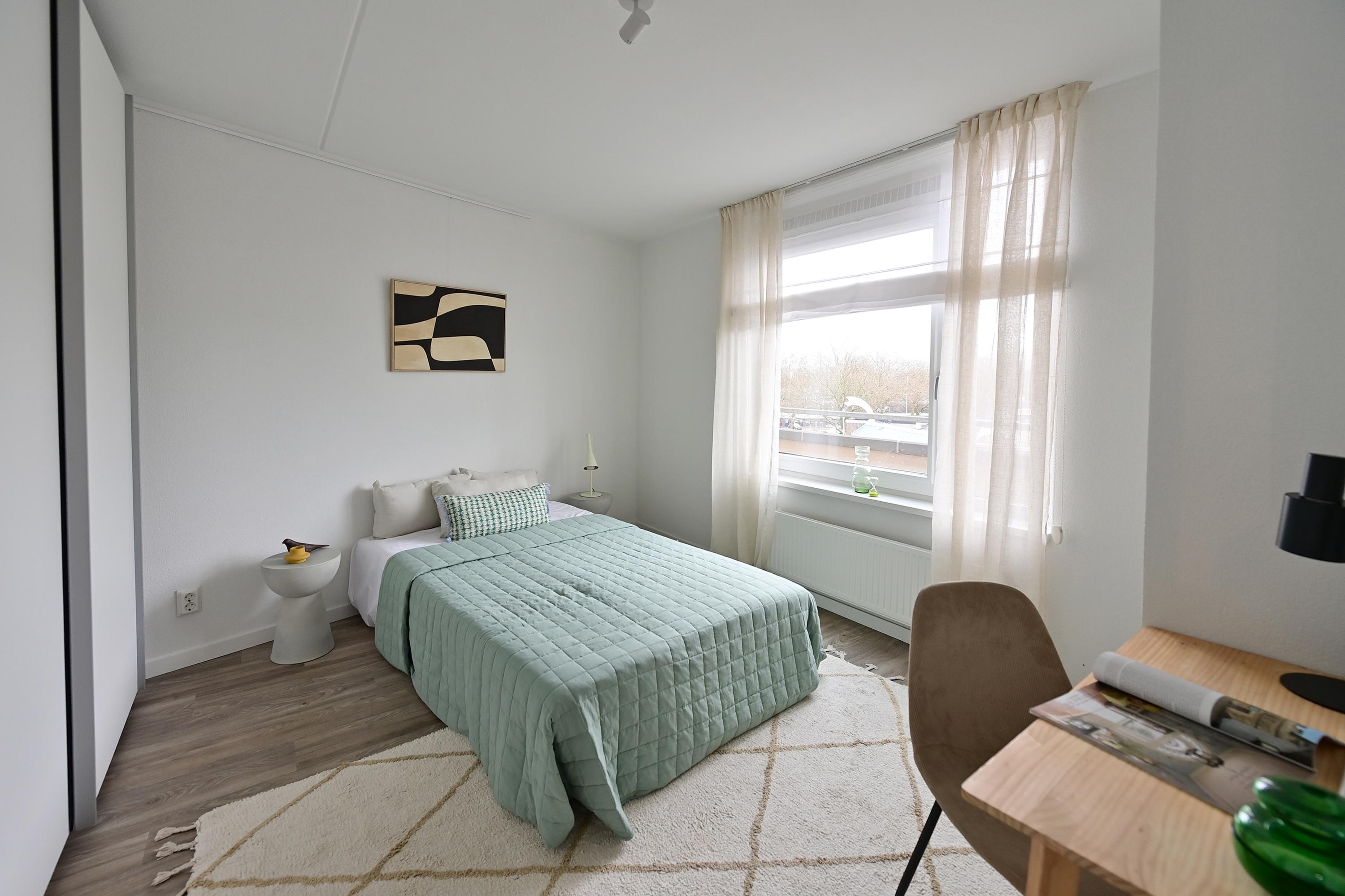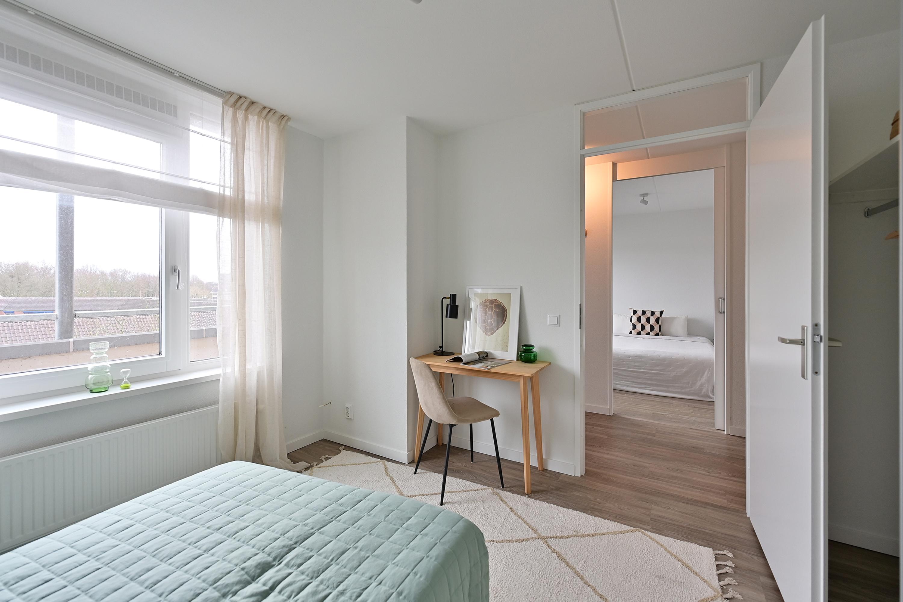 - De galerijflat heeft een woonoppervlakte van 85 m² en beschikt over 3 kamers, waarvan 2 slaapkamers;