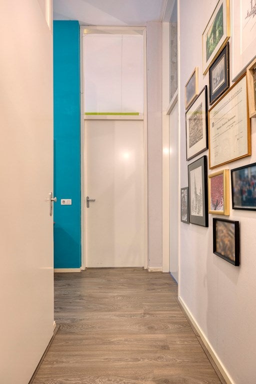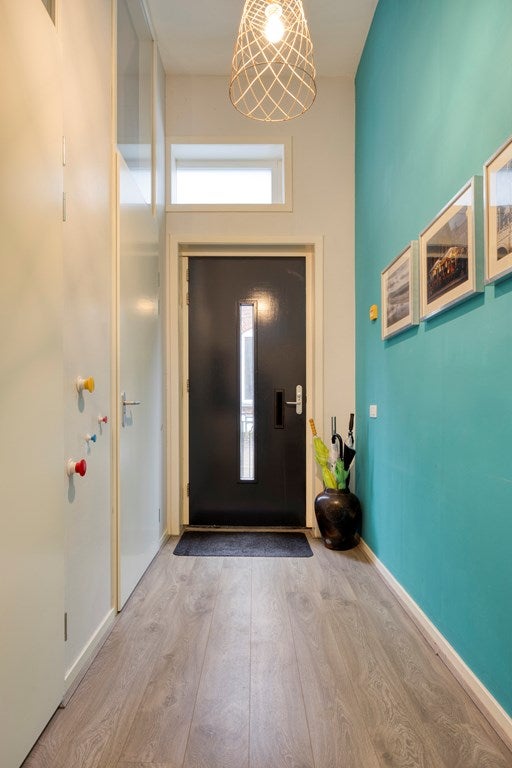 U komt binnen in de hal, met toilet en vaste bergkast met aansluitingen voor de wasmachne. Links is de doorzon woonkamer, de open keuken en een berging met de CV-ketel (Ferroli HR 2019) en balansventilatie.