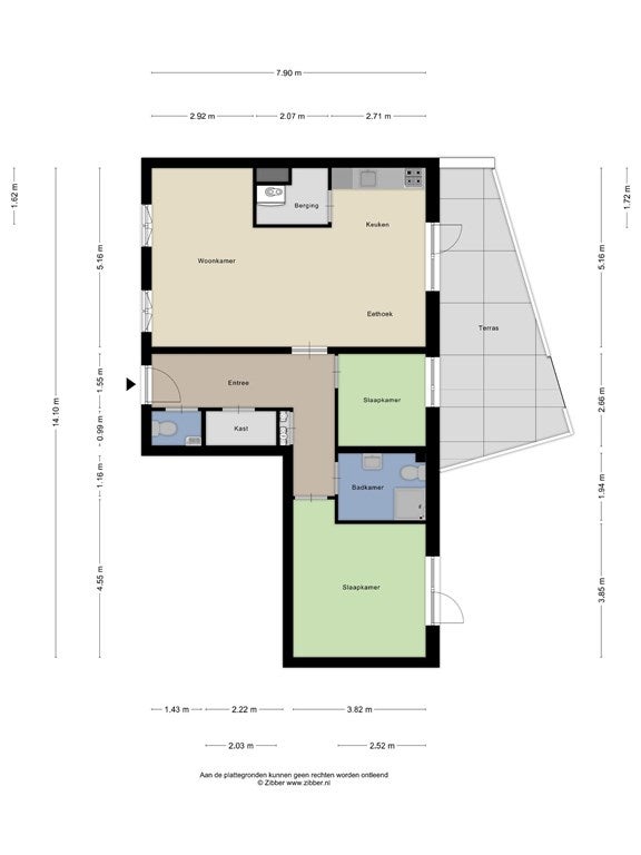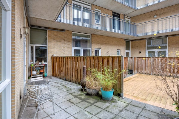 Achter het appartement is een eigen terras van 23m2.