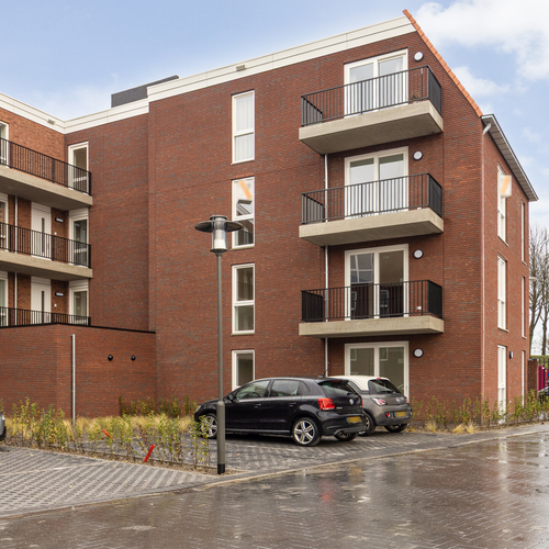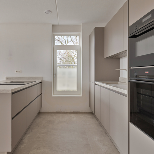 Dit moderne nieuwbouwappartement in het centrum van Hulst bevindt zich op de derde verdieping en heeft twee slaapkamers. Bij binnenkomst komt u in de hal waar aan de rechterzijde de eerste slaapkamer ligt, met uitzicht op de historische stadswallen. Verder in de hal bevindt zich de ruime woonkamer, gevuld met licht door de vele ramen. De open keuken, met kookeiland en moderne inbouwapparatuur, vormt het hart van het appartement. Via de schuifpui bereikt u de loggia op het zuiden, perfect voor zon en uitzicht. De gang leidt naar een moderne badkamer met inloopdouche, een separaat toilet en de tweede slaapkamer, geschikt voor een tweepersoonsbed. Op de begane grond is een berging voor fietsen en extra opslag, en er is een vaste parkeerplaats op het terrein.