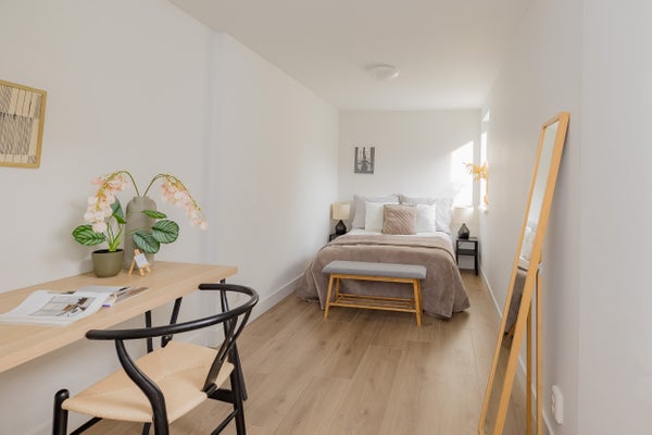 - De galerijflat heeft een woonoppervlakte van 74 m² en beschikt over 4 kamers, waarvan 3 slaapkamers;