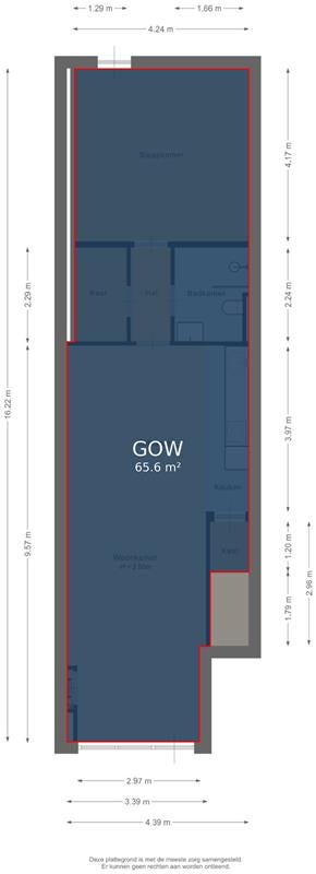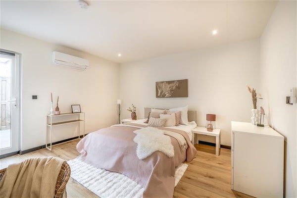 • De benedenwoning heeft een woonoppervlakte van 66 m² en beschikt over 2 kamers, waarvan 1 slaapkamer;