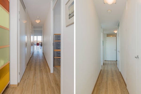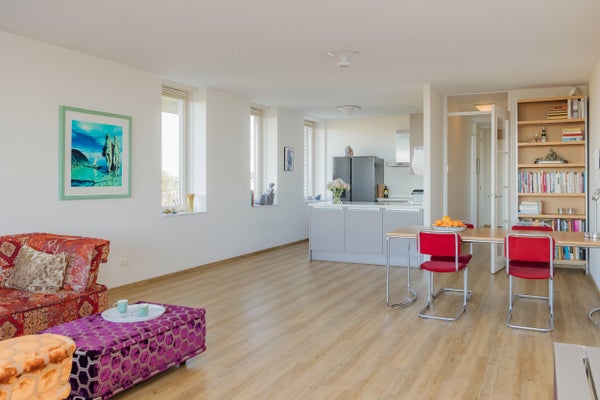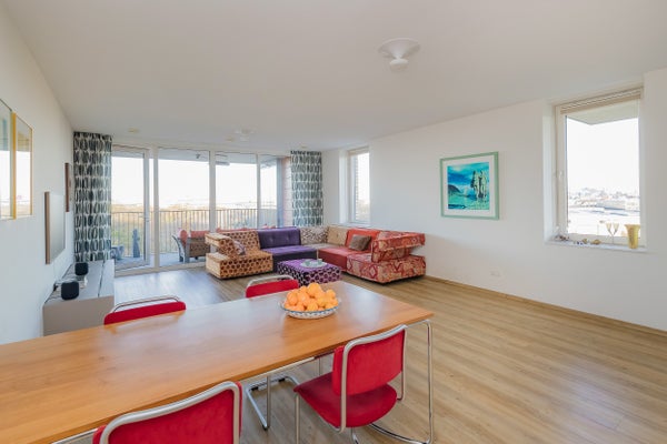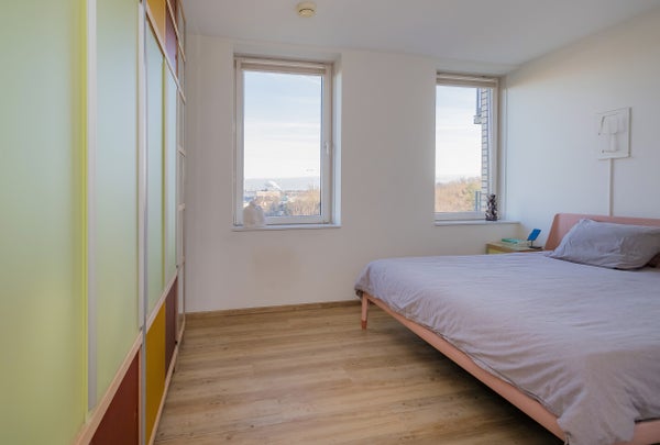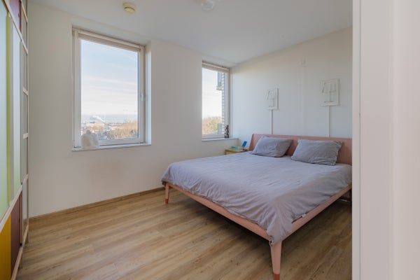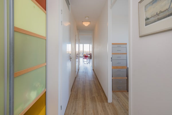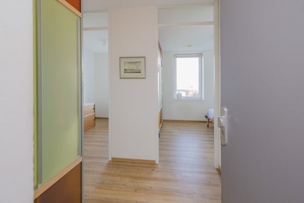 De indeling omvat een ruime entree met toegang tot de lift, twee slaapkamers, een nette badkamer met sauna en een moderne open keuken. Het terras is een heerlijke plek om van de omgeving te genieten. Het appartement is goed geïsoleerd (energielabel A+) en voorzien van vloerverwarming. Met een servicekosten van € 187 per maand is het complex goed onderhouden met een actieve VvE.