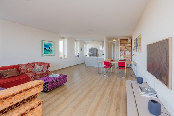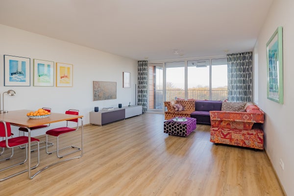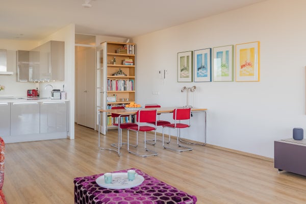 - De galerijflat heeft een woonoppervlakte van 87 m² en beschikt over 3 kamers, waarvan 2 slaapkamers;
