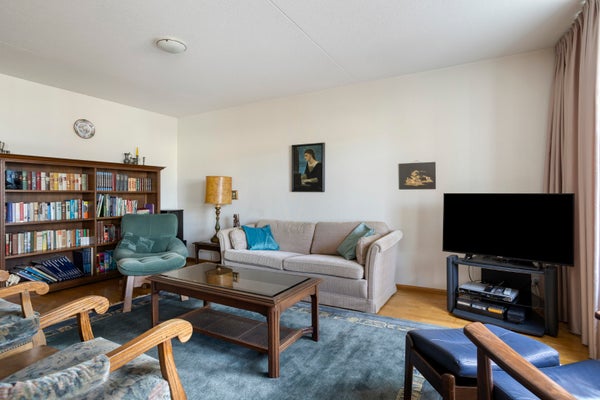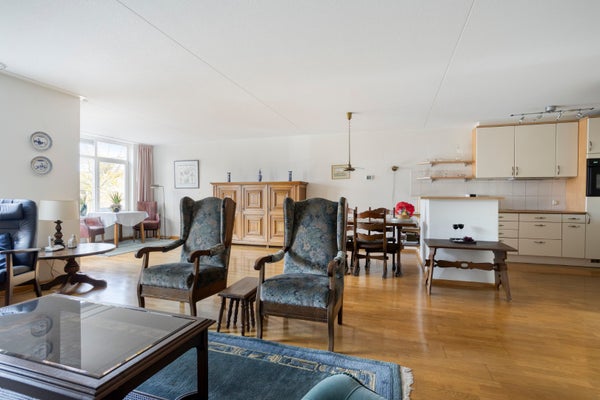 - De galerijflat heeft een woonoppervlakte van 104 m² en beschikt over 3 kamers, waarvan 2 slaapkamers;