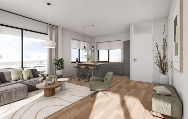 - De portiekflat heeft een woonoppervlakte van 57 m² en beschikt over 2 kamers, waarvan 1 slaapkamer;