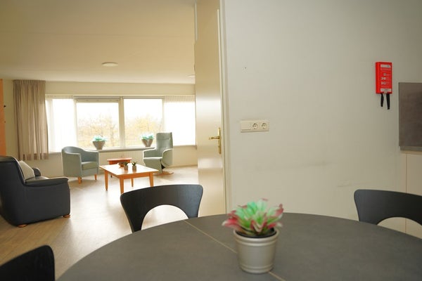 Nog een extraatje: Het appartementencomplex heeft op de begane grond een gezellig zitje om met medebewoners samen te komen. Ook kun je hier gebruik van maken, als je een keer extra veel bezoek hebt.