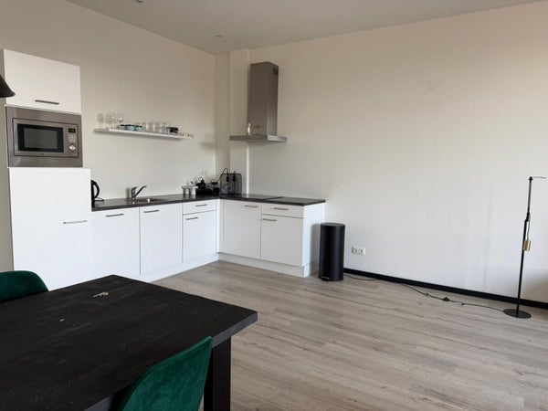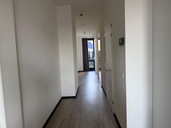 Via de voordeur komt u binnen in de woonkamer. De woonkamer is voorzien van grote raampartijen aan de voorzijde en een open keukenopstelling. De moderne keuken is voorzien van: vaatwasser, koelkast, afzuigkap, combi magnetron en inductiekookplaat.