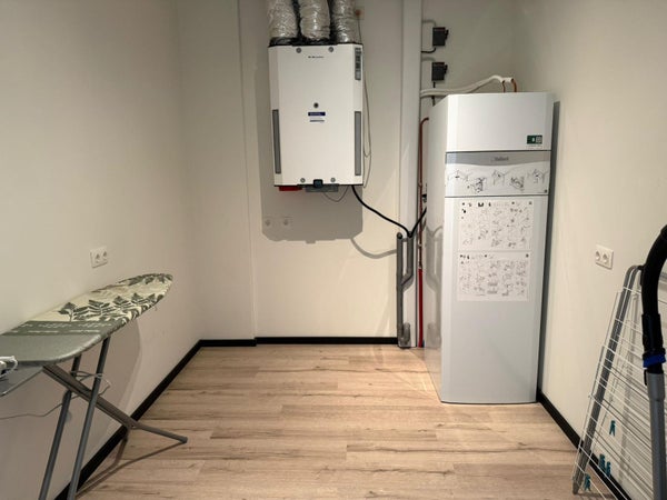 In de ruime berging is de warmtepomp, wasmachine aansluiting en meterkast aanwezig. Tevens is via de achterdeur een toegang tot het appartement.