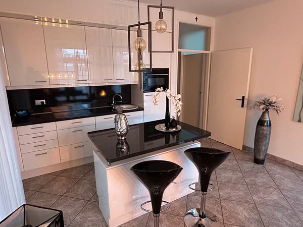 Ruim appartement met carport, kelder met ondere andere badkamer en grote sportruimte, prachtige entree, woonkamer met openslaande deuren naar achtertuin en open keuken met hoogglans aanbouwkeuken, bijkeuken, twee slaapkamers, badkamer met inloopdouche en ligbad met whirlpool, twee toiletten, tuinkamer met harmonicadeuren naar achtertuin, ontspanningsruimte met compleet ingerichte bar met zitgedeelte, voor- en achtertuin en rustig gelegen aan de Holzstraat nabij centrum van Kerkrade.