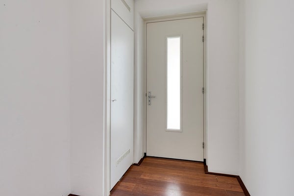 De entree van het appartement begint bij de gezamenlijke ingang aan de voorzijde. Hier vind je de brievenbussen en intercoms. Eenmaal binnen, betreed je een ruime hal die door het hart van de woning loopt en toegang biedt tot alle ruimtes.