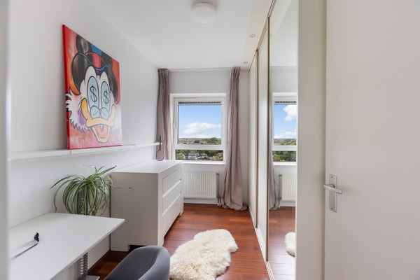 - De galerijflat heeft een woonoppervlakte van 72 m² en beschikt over 3 kamers, waarvan 2 slaapkamers;
