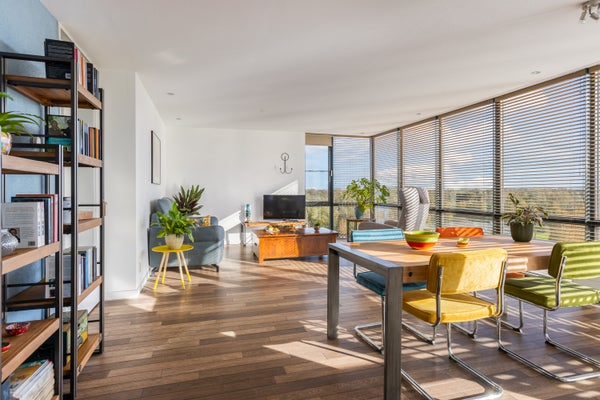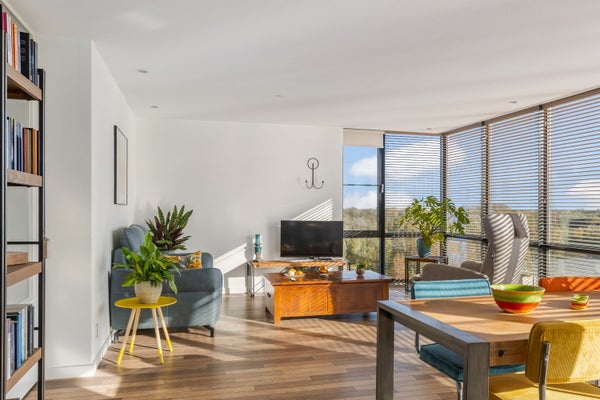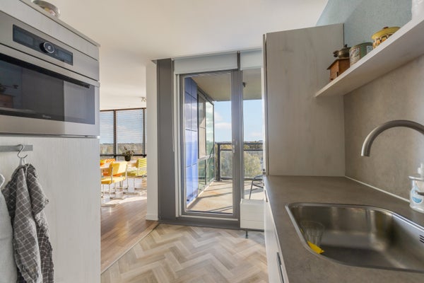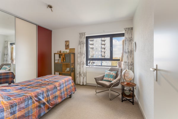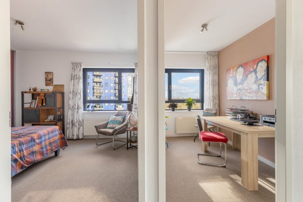 - De galerijflat heeft een woonoppervlakte van 87 m² en beschikt over 3 kamers, waarvan 2 slaapkamers;
