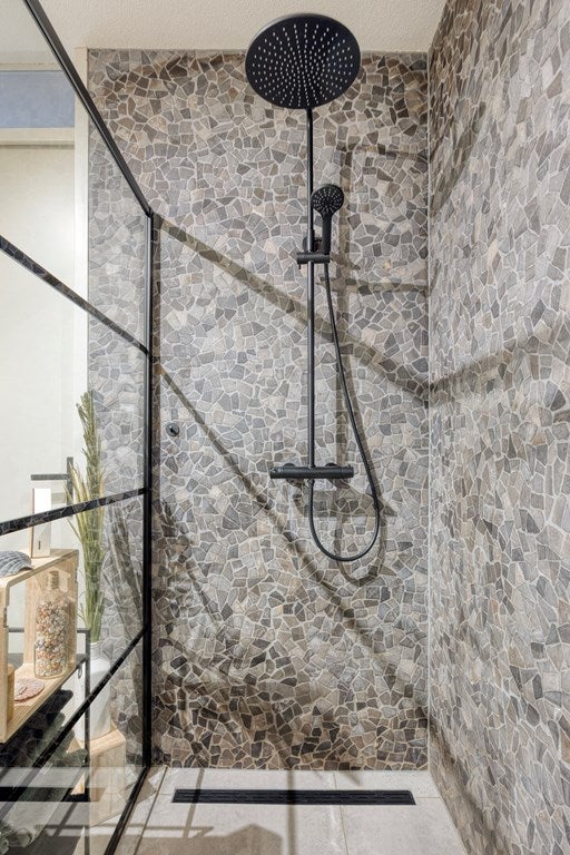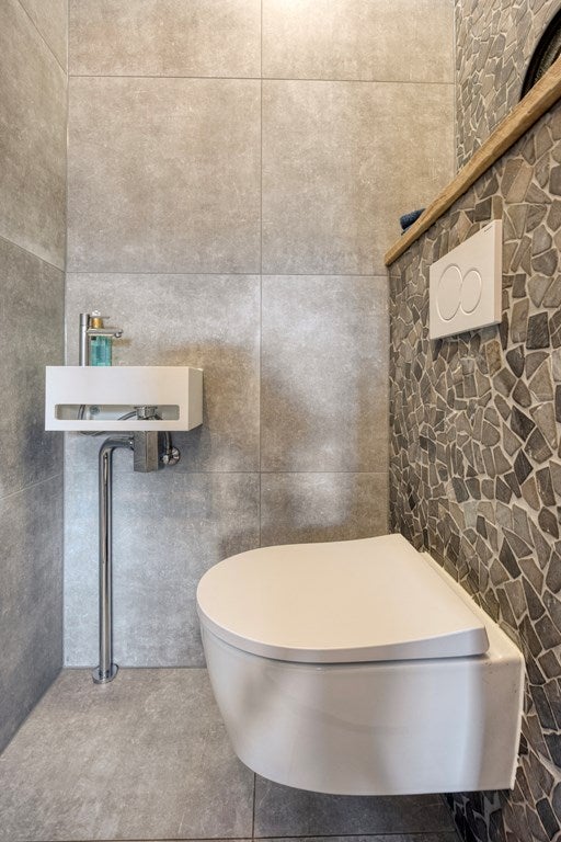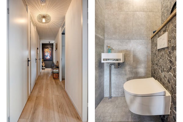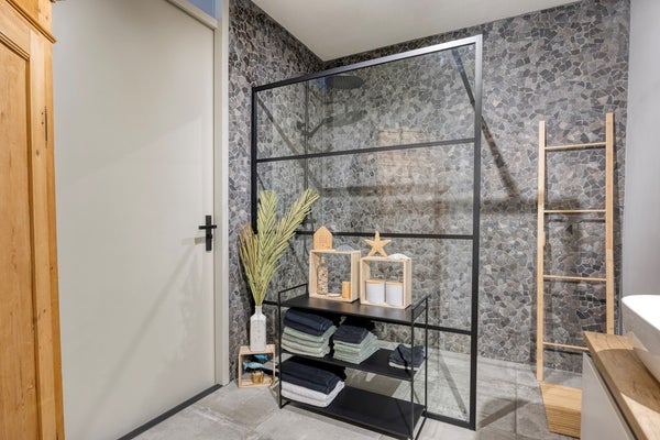 Wederom terug de hal in waar u aan de linkerzijde een ruime moderne open badkamer aantreft. Ook deze is geheel nieuw geplaatst in 2022 en voorzien van vloerverwarming, een wastafelmeubel met dubbele wasbak en een ruime inloopdouche gescheiden door een douchewand.