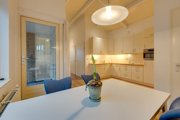 De moderne keuken is van alle gemakken voorzien en compleet uitgerust met hoogwaardige inbouwapparatuur. Je vindt hier een vaatwasser, afzuigkap, koelkast en een praktische combi-oven. Hierdoor is koken een waar genoegen en beschik je over alle apparatuur die je nodig hebt voor het bereiden van heerlijke maaltijden.