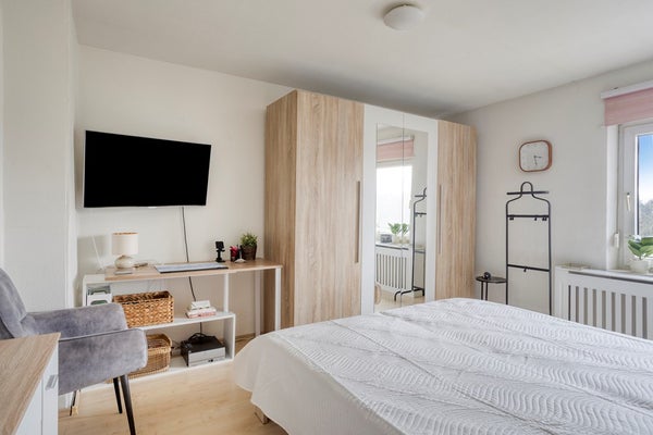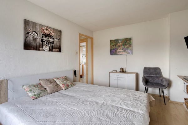 Aan alles is gedacht; ook in de badkamer ontbreekt het je aan niets. Net tegelwerk, frisse uitstraling en praktisch ingericht – allemaal keurig verzorgd. Je hebt voldoende ruimte om de dag goed te beginnen of ’s avonds even helemaal tot rust te komen. De slaapkamer ligt aan de rustige kant van het huis en biedt volop plek voor een tweepersoonsbed en een handige kast. Een echt fijn vertrek waar je je even kunt terugtrekken.