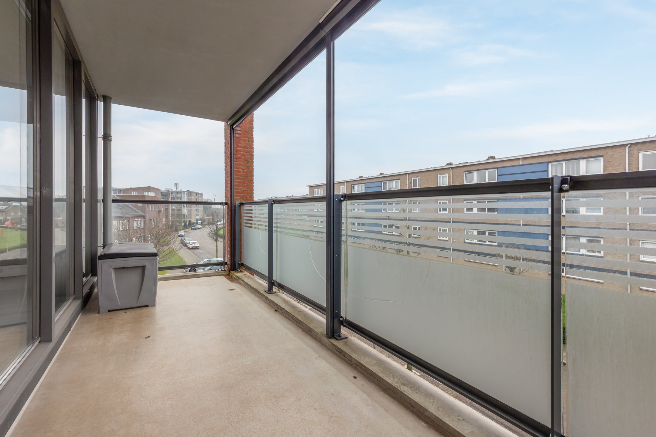 - De galerijflat heeft een woonoppervlakte van 90 m² en beschikt over 3 kamers, waarvan 2 slaapkamers;