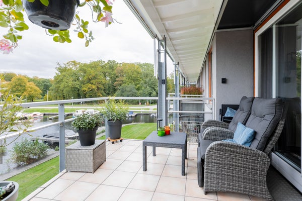 - De galerijflat heeft een woonoppervlakte van 112 m² en beschikt over 3 kamers, waarvan 2 slaapkamers;