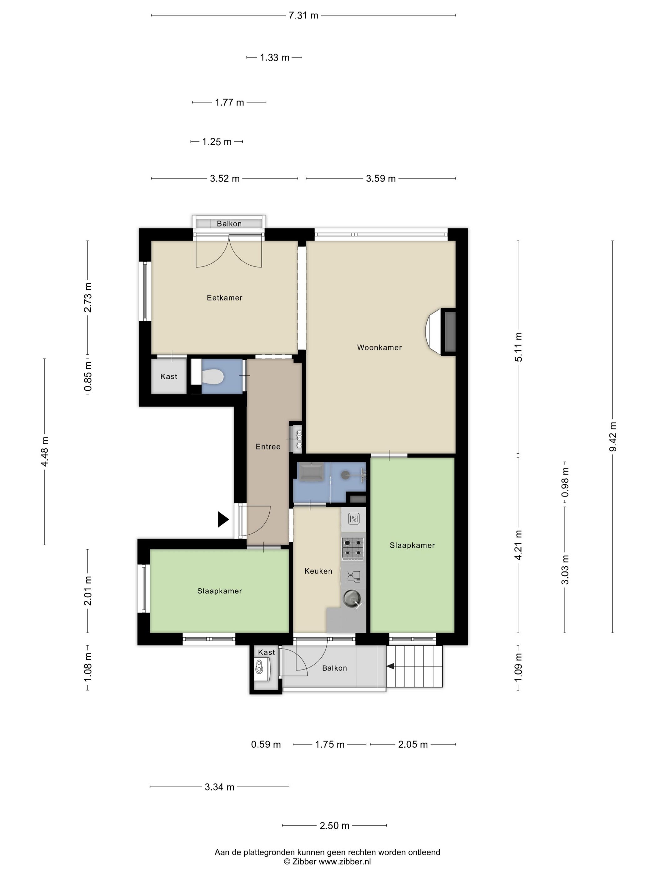 - De galerijflat heeft een woonoppervlakte van 60 m² en beschikt over 3 kamers, waarvan 2 slaapkamers;