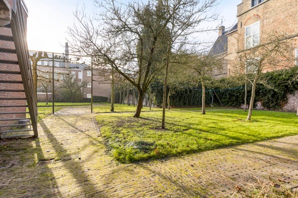 De achterzijde van het appartement grenst aan een ruime stadstuin die enkel toegankelijk is voor omwonenden. Deze tuin ligt op het Zuiden maar heeft ook heerlijke schaduwrijke hoeken.
