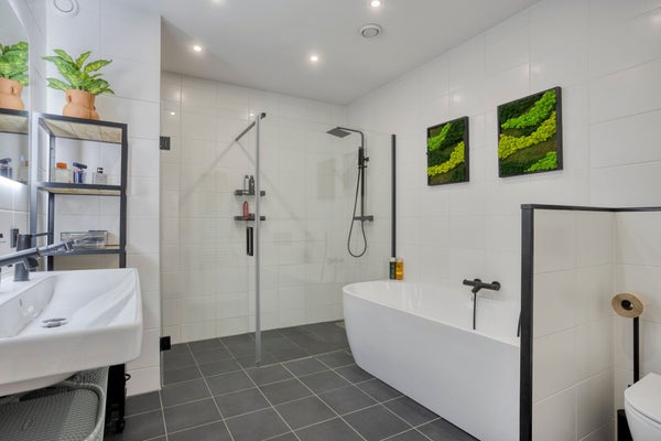 De badkamer voelt als een privé-wellness en is uitgerust met een groot whirlpool ligbad, een inloopdouche, dubbele wastafel en een infraroodsauna voor je rug en kuiten. Daarnaast is er een separaat tweede toilet aanwezig. Beide toiletten zijn bovendien uitgerust met een handbidet, wat extra comfort en hygiëne biedt.