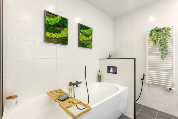 - Luxe badkamer met whirlpool, inloopdouche, dubbele wastafel en infraroodsauna