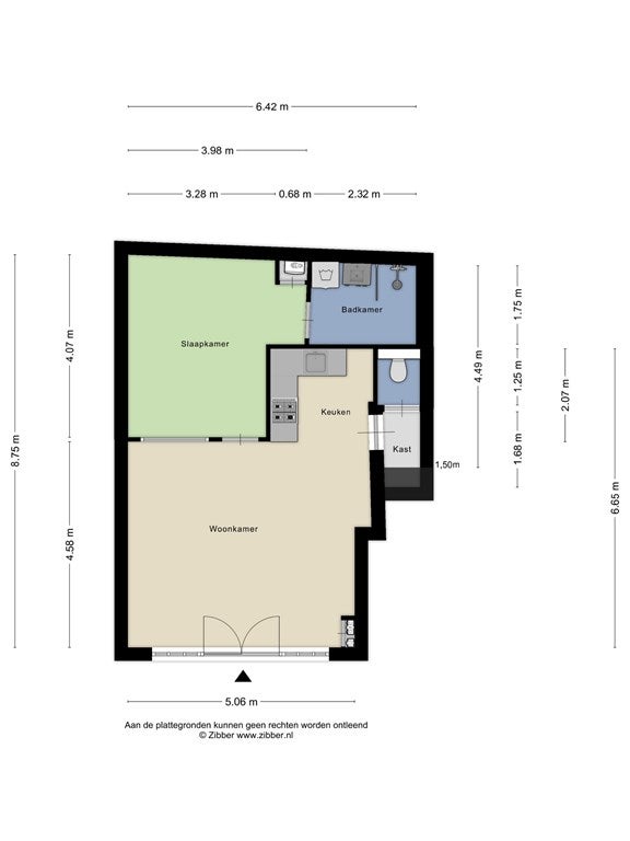 Vanuit de woonkamer bereikt u de hal, waar zich het separate toilet bevindt. Aan de achterzijde ligt de slaapkamer, rustig gesitueerd en goed in te delen. De badkamer met douche en wastafel grenst aan de slaapkamer.