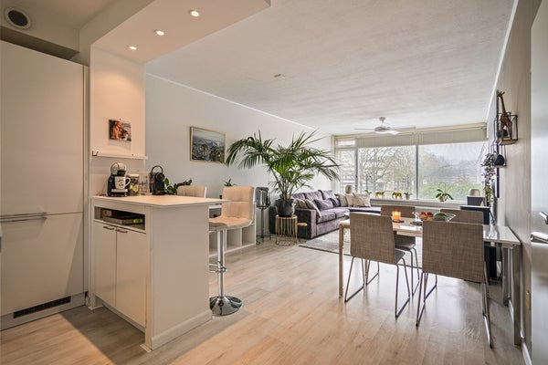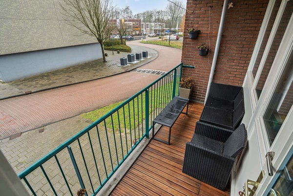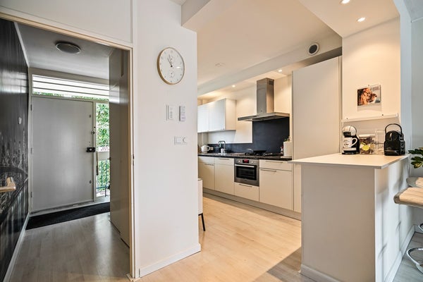 Aan de voorzijde bevindt zich de lichte en sfeervolle woonkamer. Dankzij de brede raampartijen valt hier veel daglicht binnen en is er volop ruimte voor zowel een comfortabele zithoek als een eettafel. De woonkamer sluit prettig aan op het balkon aan de achterzijde, waar je een rustige plek hebt om even buiten te zitten en te genieten van de buitenlucht.