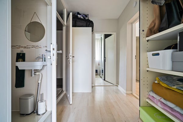 Via de centrale hal zijn de drie slaapkamers bereikbaar. De hoofdslaapkamer is ruim en rustig gelegen; de tweede en derde slaapkamer is ideaal te gebruiken als logeerkamer, thuiswerkplek of kinderkamer. De moderne badkamer is netjes afgewerkt en voorzien van een inloopdouche en wastafelmeubel, handdoekradiator en voldoende opbergruimte. Daarnaast is er een separaat toilet in de hal, wat het wooncomfort compleet maakt.