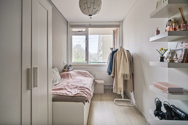 In de geliefde en groene wijk Hoge Mors ligt dit verzorgde en prettig ingedeelde 4-kamerappartement op de eerste verdieping van een net onderhouden appartementencomplex. De woning is licht, praktisch ingericht en beschikt over een ruime woonkamer, een moderne open keuken, drie slaapkamers, een fijn balkon én een bijzonder royale berging op de begane grond. Een ideale combinatie van comfort, functionaliteit en een rustige woonomgeving, met alle voorzieningen binnen handbereik. Wat het appartement extra uniek maakt is dat het als enige gelegen is op de galerij. Geen last dus van mensen die langs lopen over de galerij.