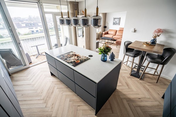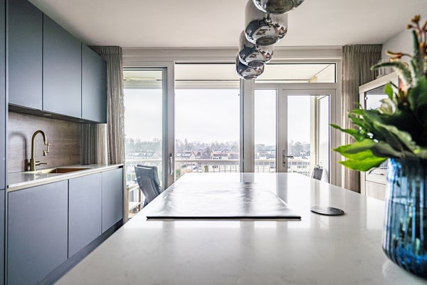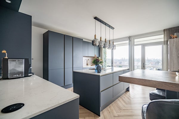 De halfopen keuken grenst direct aan de woonkamer en biedt toegang tot het zonnige balkon. Dankzij de ligging geniet u hier van veel privacy. De keuken is werkelijk een droom voor iedere hobbykok en is voorzien van hoogwaardige inbouwapparatuur, waaronder: