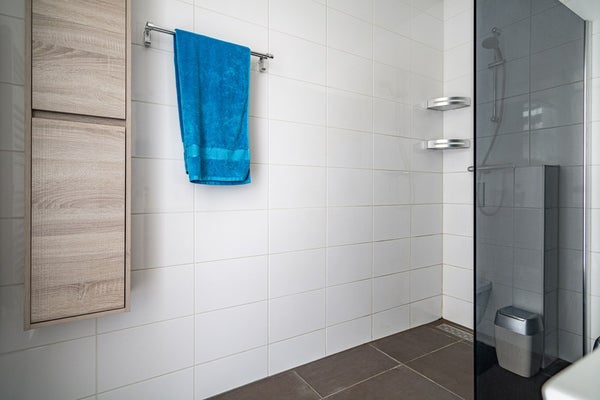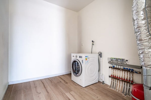 In addition, there is a separate utility room with the central heating boiler (Itho Daalderop) and underfloor heating manifold. The floor also has underfloor heating, with the rooms individually adjustable.
